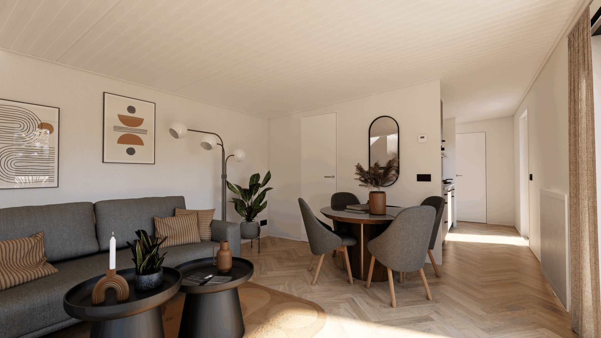 Das Pavillon Horizon – mit einer Fläche von ca. 45 m² – ist perfekt für 4 Personen und bietet allen Komfort und Platz, den Sie sich wünschen. Das Pavillon Horizon verfügt über zwei geräumige Schlafzimmer und ein luxuriöses Badezimmer mit Dusche. Die trendige Küche ist mit einem Geschirrspüler und einer Kombi-Mikrowelle ausgestattet, sodass Sie im Handumdrehen köstliche Mahlzeiten zubereiten können. Bodenbeläge und Polster sind im Preis inbegriffen, sodass Sie sofort mit der Einrichtung Ihres neuen Zuhauses beginnen können. Außerdem sind Stauschränke und Kleiderschränke vorhanden, sodass Sie sofort über ausreichend Stauraum verfügen.