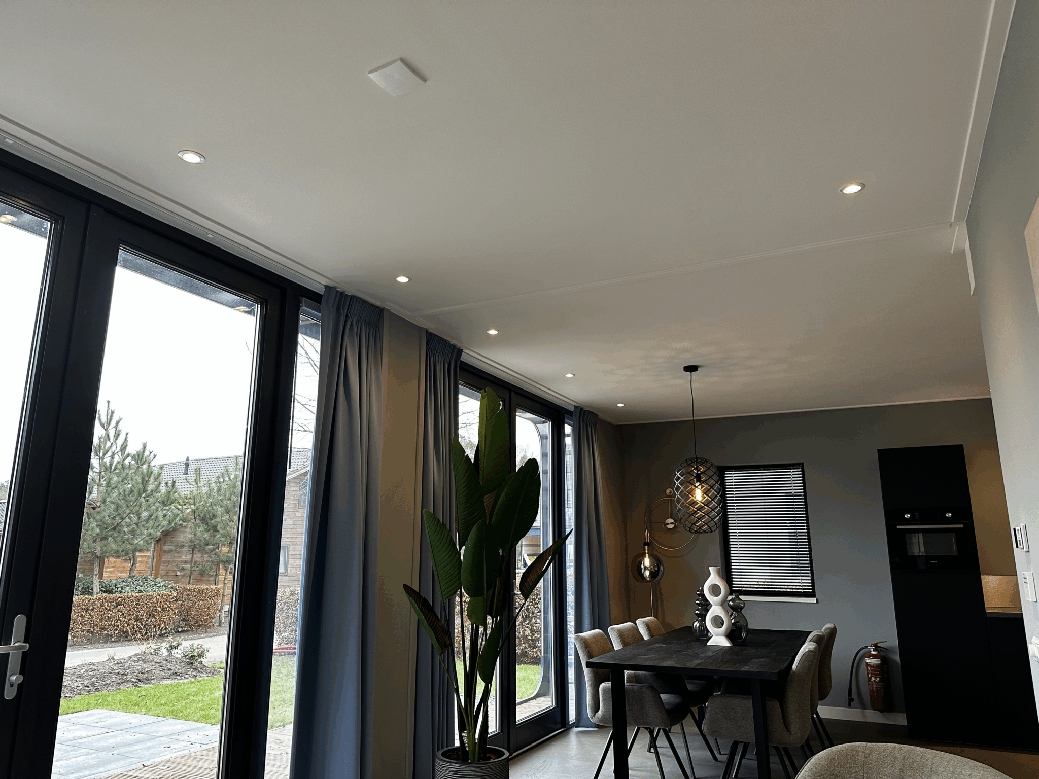 Modus 6 - Het trendy exterieur van de Modus 6 doet u verrassen en geeft een unieke indruk van de nieuwste generatie van recreatiewoningen. De ronde vormen zijn aantrekkelijk in het ontwerp verwerkt en geven echt het ‘wauw’ gevoel. De woonkamer heeft een grote glaspartij waarmee je een panoramisch uitzicht hebt. Aangrenzend is de masterbedroom waar het heerlijk vertoeven is.