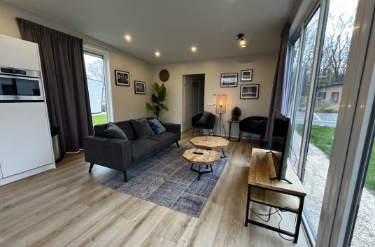 Modus Wellness 2 - De Modus Wellness 2 doet denken aan een luxe hotelkamer plus heerlijke wellnessfaciliteiten. Het gelijkvloerse en vrijstaande chalet biedt plaats aan 2 personen. De woon-slaapkamer is warm ingericht. U vindt er een tweepersoonsbed met een zogenaamde sterrenhemel als verlichting, een eethoek en een zithoek met televisie. Er is een badkamer met een ligbad, ruime regendouche, wastafel en traditionele sauna. De open keuken is onder andere uitgerust met een vaatwasser, koelkast en een filter koffiezetapparaat. Ook is er een apart toilet aanwezig. Buiten is een terras met tuinmeubilair. U kunt 1 auto bij het chalet parkeren en er is wifi aanwezig.