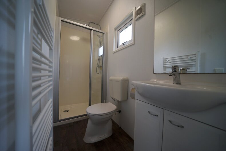 Pavilon Mystique - Der Haustyp 'Pavillon Mystique' ist geräumig, komfortabel und bietet ein optimales Preis-Leistungs-Verhältnis. Er ist wartungsarm und komplett mit langlebigen Materialien ausgestattet, was ihm ein attraktives und hochwertiges Aussehen verleiht. Warme Farbtöne geben dem Haus einen einladenden und gemütlichen Charakter. Der 'Pavillon Mystique' hat zwei Schlafzimmer und bietet Platz für bis zu 4 Personen. Darüber hinaus verfügt das Haus über einen hellen Wohnbereich, eine praktische Küche mit hochwertigen Einbaugeräten und ein modernes Badezimmer mit Dusche und WC. Vom Wohnzimmer aus erreichen Sie die geflieste Terrasse und das Gartengrundstück