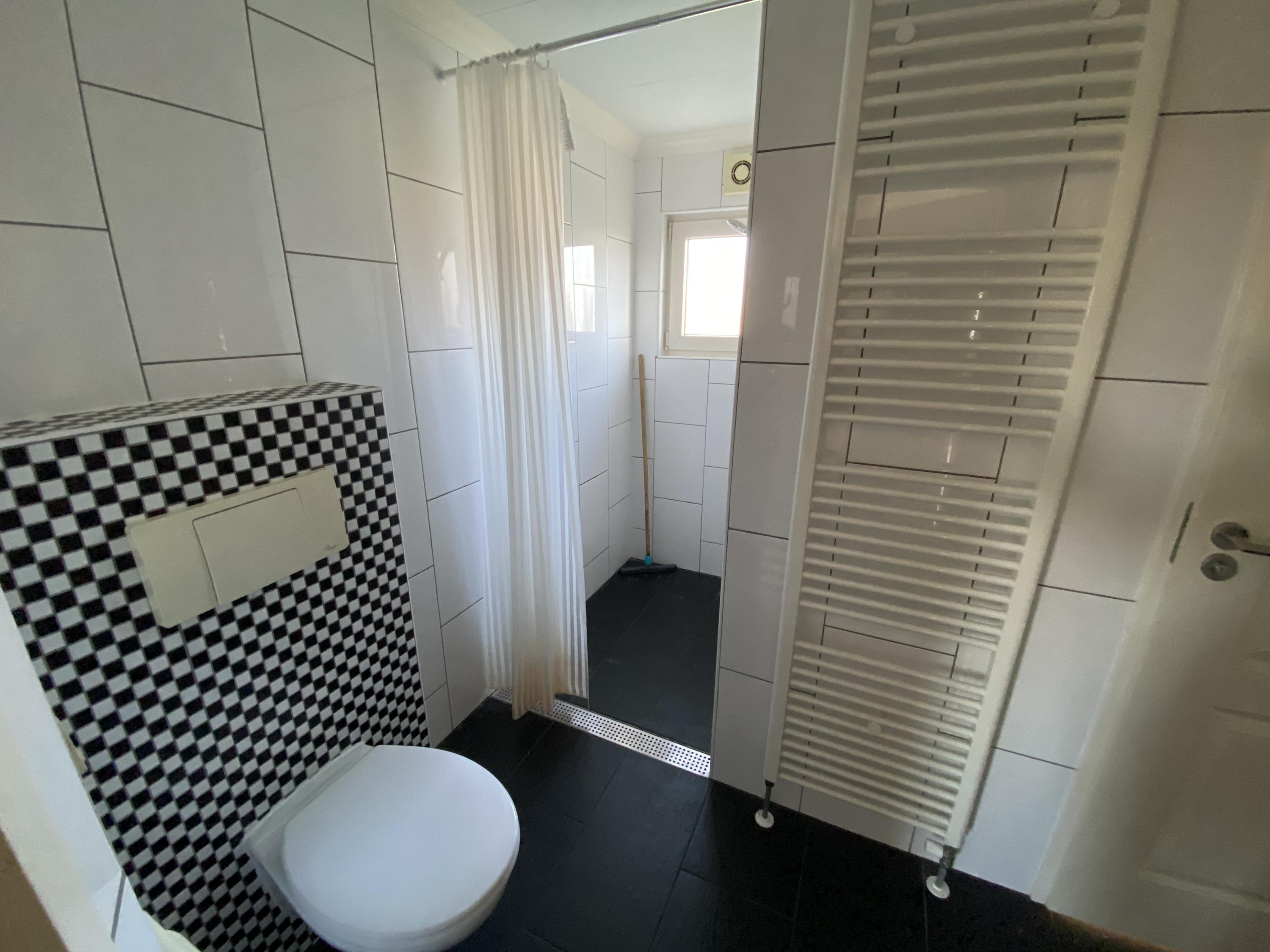 De nette badkamer is volledig betegeld. Hier vindt u een douchecabine, designradiator, toilet en wastafel met spiegel. Bovendien is er nog een separaat toilet aanwezig in de woning.