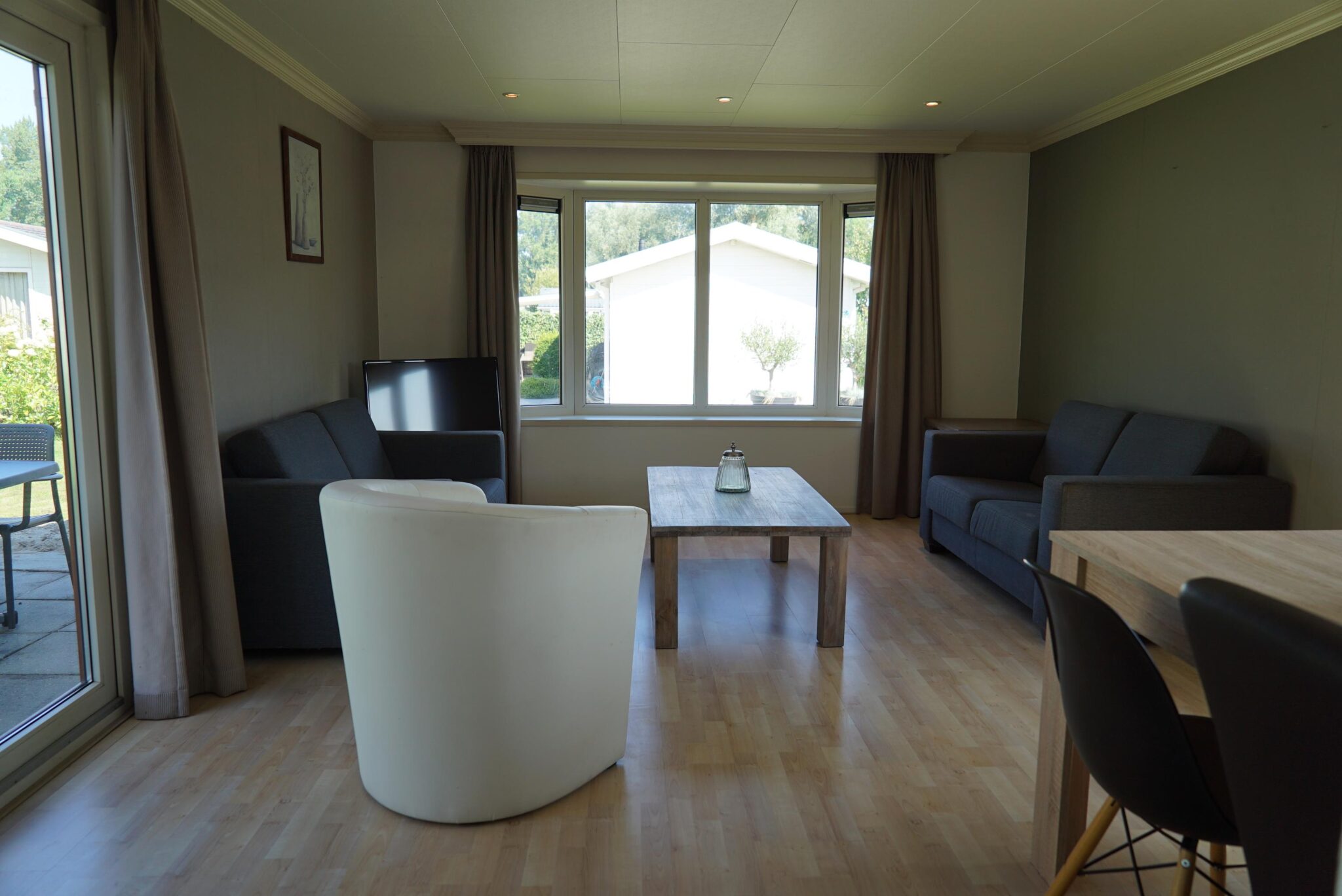 Velthorst - Das Ferienhaus Velthorst 4 ist ein freistehendes, ebenerdiges Chalet, das für 4 Personen geeignet ist. Das Wohnzimmer hat eine gemütliche Sitzecke und einen Fernseher. Außerdem gibt es eine separate Essecke. Die offene Küche ist u.a. mit einem Geschirrspüler, einer Kombimikrowelle und einer Kaffeemaschine ausgestattet.