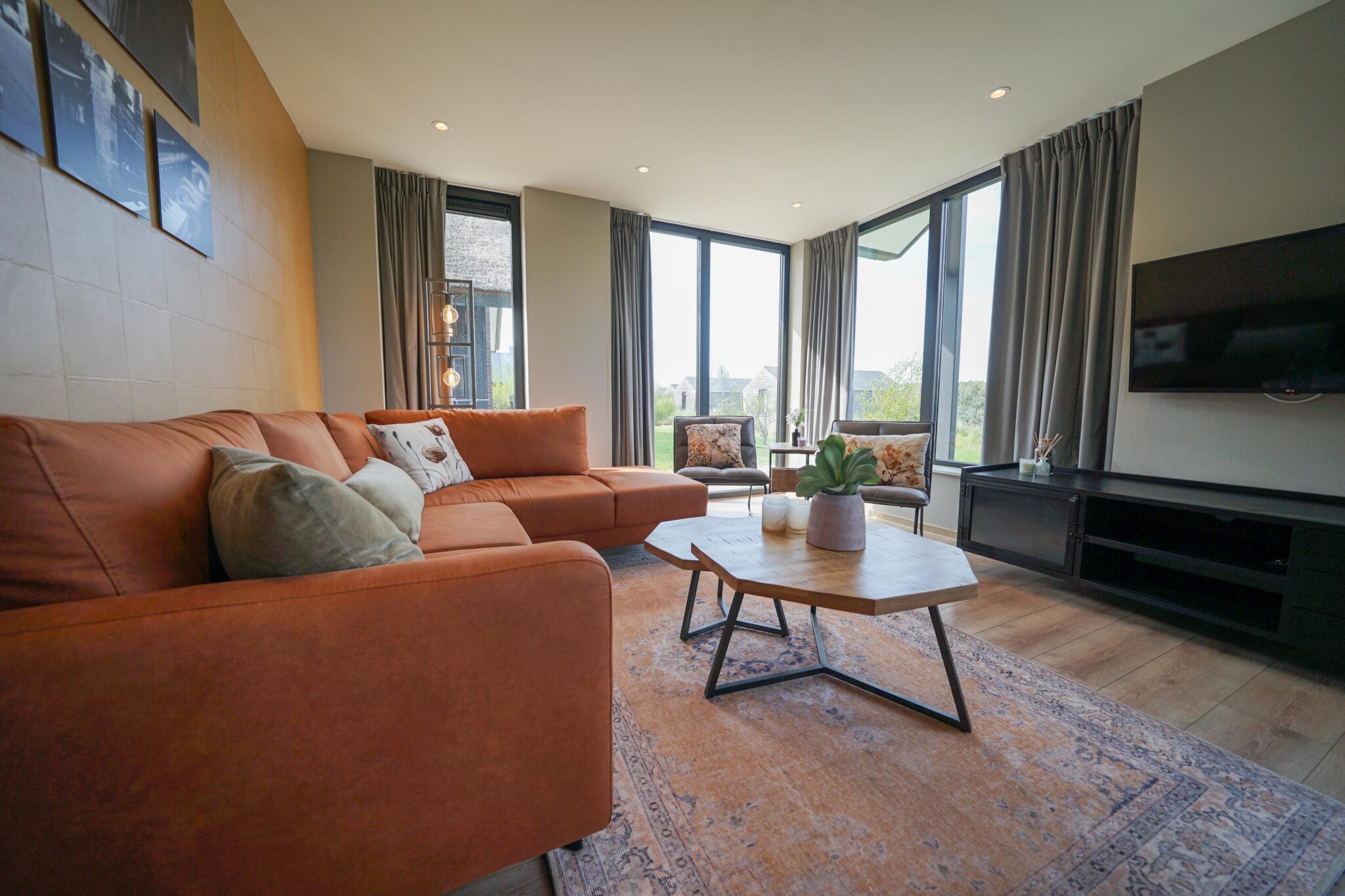 Meervilla 10 - Ruhe, viel Platz und eine schöne Aussicht: Das ist es, wofür diese Meervilla steht. Die großen Fenster sorgen für viel Tageslicht und vermitteln ein Gefühl von Freiheit. Der Schornstein und die robuste Seitenfassade verleihen dem Ferienhaus einen robusten Charakter, so dass es im Wohnzimmer im Winter, wenn es draußen stürmt und regnet, umso gemütlicher ist. Die offene Küche ist luxuriös eingerichtet und mit allen Küchenutensilien ausgestattet, die man in einer Küche erwarten kann. Vom Wohnzimmer aus gelangt man auch auf die Terrasse, die mit Gartenmöbeln ausgestattet ist und für entspannte Stunden im Freien sorgt.