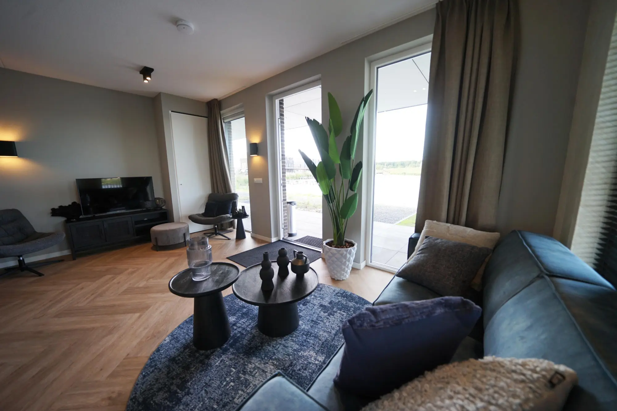 De Reeve 4 - Das knapp 50 Quadratmeter große Apartment ist für 4 Personen geeignet. Es besteht aus einem Wohnzimmer mit offener Küche, einem Bad mit begehbarer Dusche, Waschbecken und Toilette sowie zwei Schlafzimmern. Die überdachte Terrasse verfügt über eine Abtrennung zu den anderen Wohnungen und besticht mit der direkten Aussicht auf das Wasser.