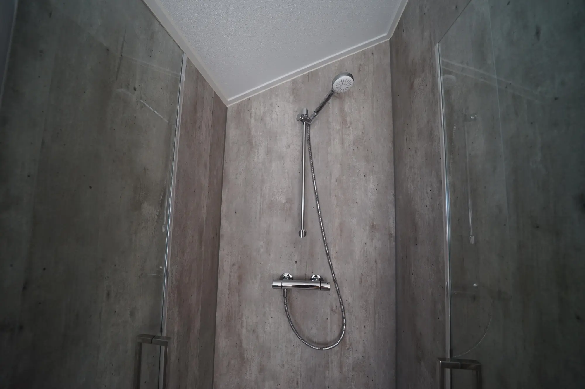Vom Wohnzimmer aus haben Sie direkten Zugang zum Flur, in dem sich die beiden Schlafzimmer und das Badezimmer befinden. Beide sind, genau wie das Wohnzimmer und die Küche, komplett mit schönen Materialien eingerichtet. Beide Schlafzimmer verfügen über ausreichend Stauraum. Das Badezimmer ist mit einer Dusche, einer Toilette, einem Waschbecken und einem Heizkörper ausgestattet.