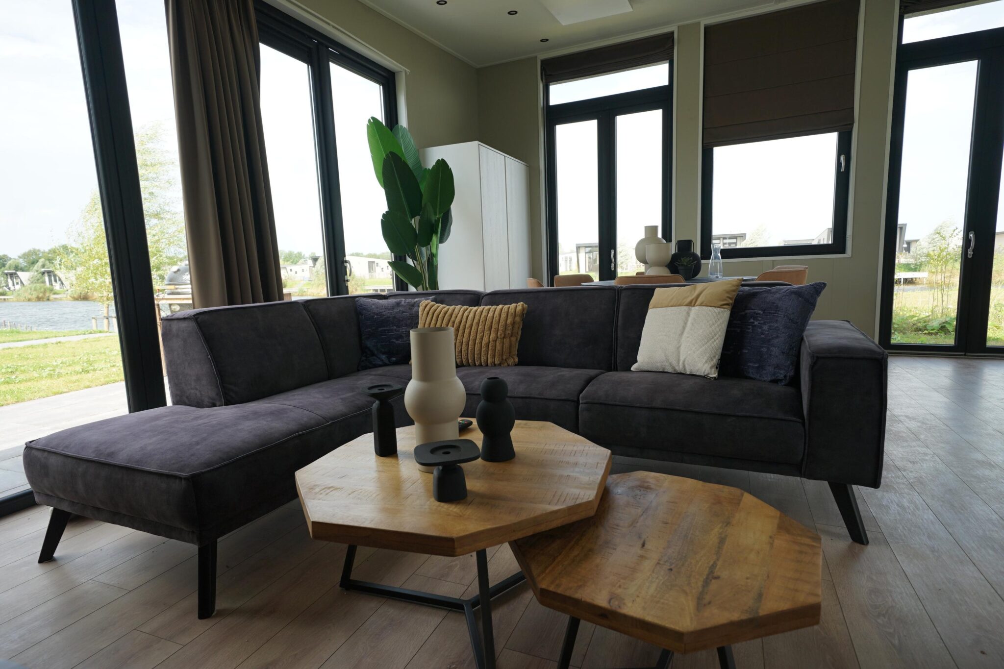 Tegelijkertijd is er naast dat thuis-gevoel ook de dagelijkse prettige tinteling op vakantie te zijn. Dankzij de blik op het terras en de mooie tuin door de grote ramen. Dankzij ook de inspirerende wijze waarop de vakantiewoning is aangekleed.