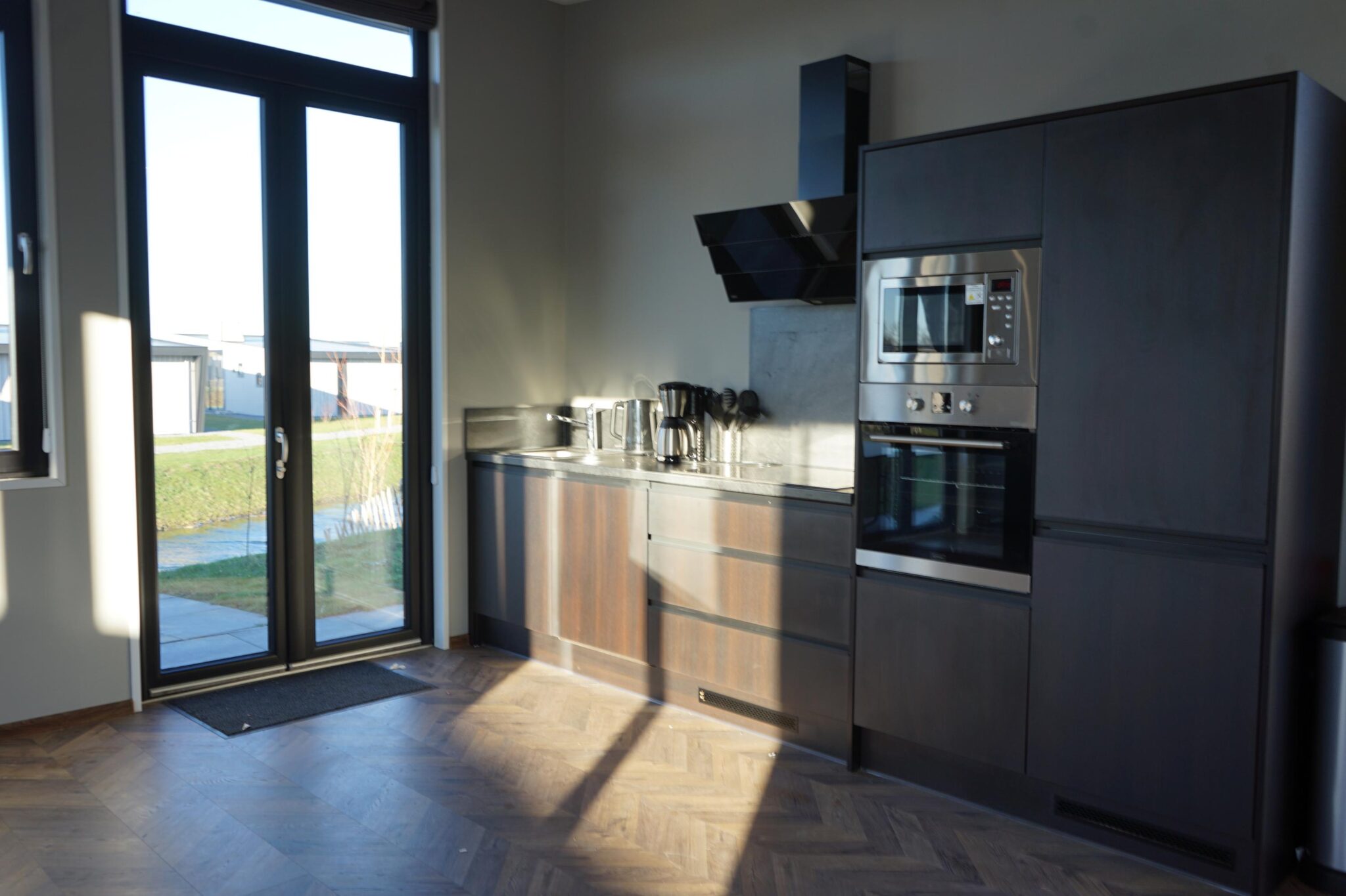 Das 'Just Nature' bietet die Möglichkeit, komplett elektrisch zu kochen. Die Küche befindet sich direkt neben der Tür zum Garten mit Terrasse, wodurch man einen schönen Ausblick beim Kochen genießen kann. Die Küche ist komplett ausgestattet und verfügt unter anderem über einen Geschirrspüler, eine Kombimikrowelle und eine Kaffeemaschine.