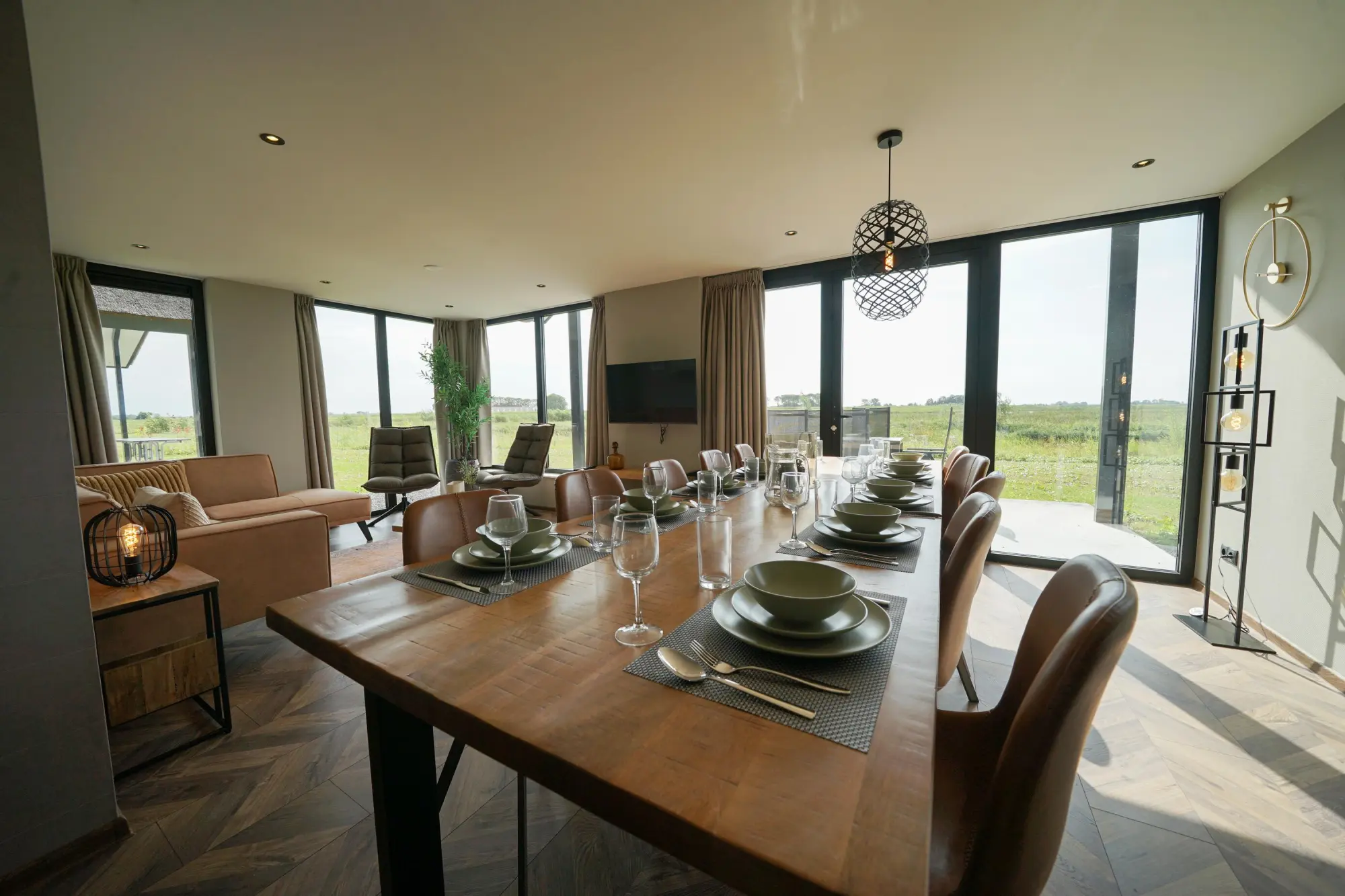 Meervilla type 2 10 - Ruhe, Weite und viel Aussicht, kurz gesagt: Inselfeeling pur. Dafür steht die Meervilla. Mit viel Licht verstärken die großen Fenster das Gefühl von Freiheit, was den Reiz eines Insel-Aufenthaltes zusätzlich vergrößert. Der Kamin und die robuste Seitenwand verleihen dem Ferienhaus einen urigen Charakter, so dass Sie es im Wohnzimmer auch im Winter behaglich und gemütlich haben, selbst wenn es draußen stürmt und schwerer Regen gegen das Dach peitscht.