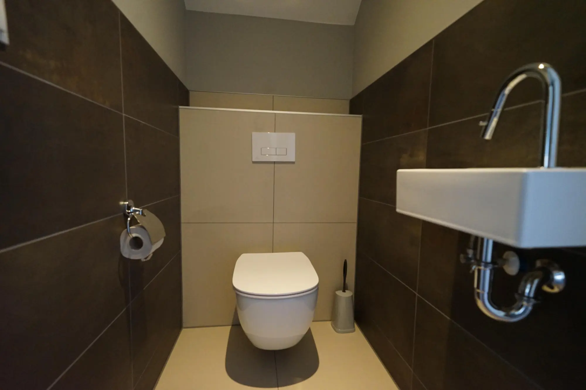 Im Erdgeschoss begeistert das geräumige Badezimmer mit Dusche, Doppelwaschbecken und frei hängender Toilette, während sich das geräumige Wohnzimmer mit dem zarten Licht und Zugang zur Terrasse als exklusive Visitenkarte präsentiert. Genau wie der lichtdurchflutete Eingang, der mit dem Wohnzimmer, dem Bad, der Toilette und dem Obergeschoss verbunden ist. Darüber hinaus ist die Küche luxuriös mit allem Küchenzubehör ausgestattet, das man in einer Küche erwarten darf.