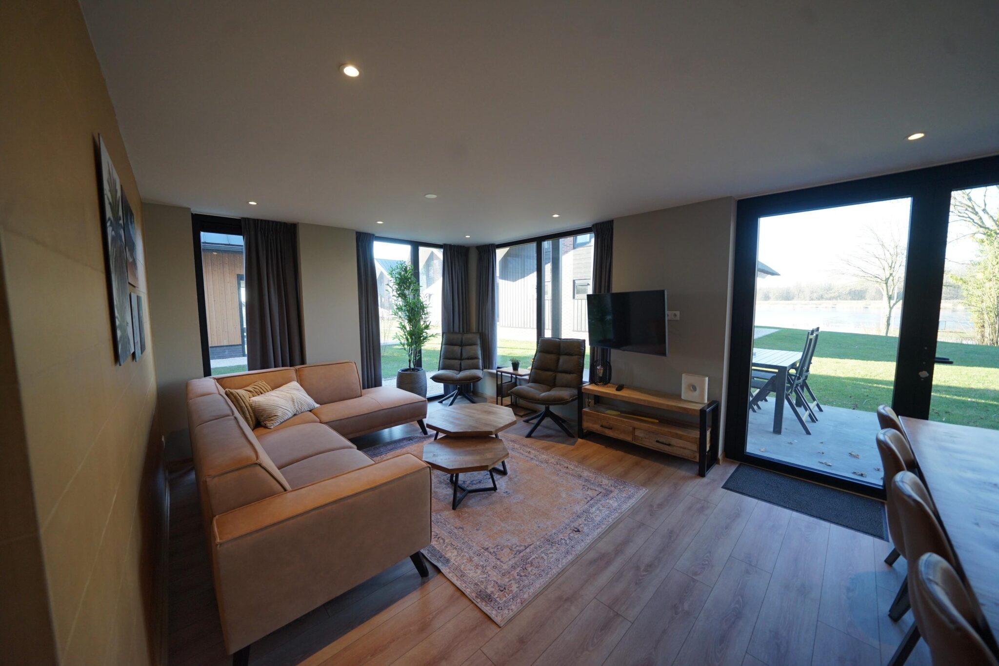 Meervilla type 5 10 - Ruhe, Weite und viel Aussicht, kurz gesagt: Inselfeeling pur. Dafür steht die Meervilla. Mit viel Licht verstärken die großen Fenster das Gefühl von Freiheit, was den Reiz eines Insel-Aufenthaltes zusätzlich vergrößert. Der Kamin und die robuste Seitenwand verleihen dem Ferienhaus einen urigen Charakter, so dass Sie es im Wohnzimmer auch im Winter behaglich und gemütlich haben, selbst wenn es draußen stürmt und schwerer Regen gegen das Dach peitscht.