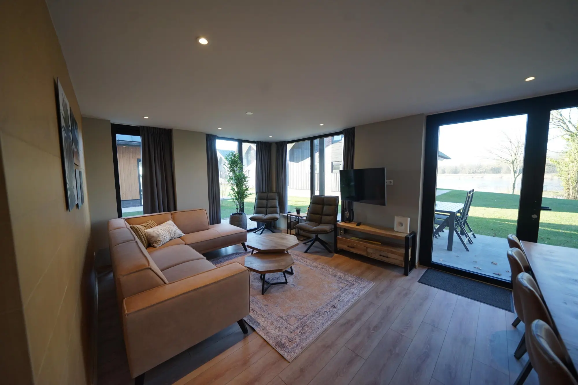 Meervilla type 3 10 - Ruhe, Weite und viel Aussicht, kurz gesagt: Inselfeeling pur. Dafür steht die Meervilla. Mit viel Licht verstärken die großen Fenster das Gefühl von Freiheit, was den Reiz eines Insel-Aufenthaltes zusätzlich vergrößert. Der Kamin und die robuste Seitenwand verleihen dem Ferienhaus einen urigen Charakter, so dass Sie es im Wohnzimmer auch im Winter behaglich und gemütlich haben, selbst wenn es draußen stürmt und schwerer Regen gegen das Dach peitscht.