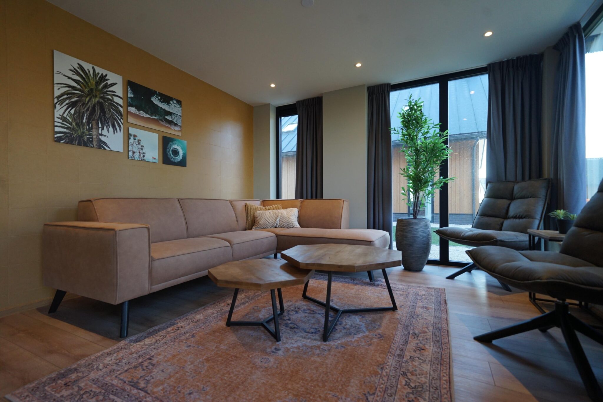 Meervilla type 3 10 - Ruhe, Weite und viel Aussicht, kurz gesagt: Inselfeeling pur. Dafür steht die Meervilla. Mit viel Licht verstärken die großen Fenster das Gefühl von Freiheit, was den Reiz eines Insel-Aufenthaltes zusätzlich vergrößert. Der Kamin und die robuste Seitenwand verleihen dem Ferienhaus einen urigen Charakter, so dass Sie es im Wohnzimmer auch im Winter behaglich und gemütlich haben, selbst wenn es draußen stürmt und schwerer Regen gegen das Dach peitscht.