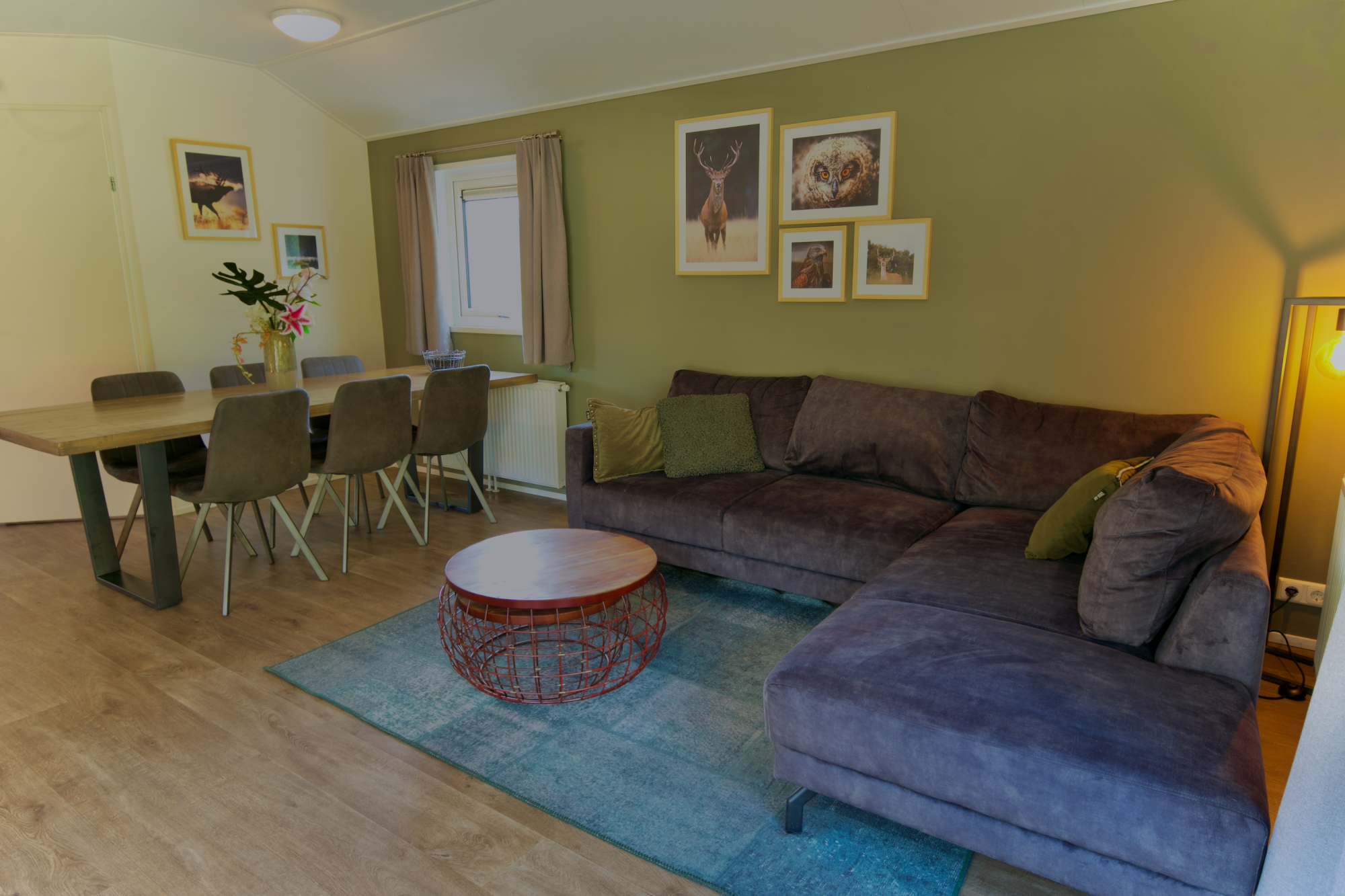 Velthorst 6 – Warmes und komfortables Chalet für 6 Personen. Das freistehende Chalet Velthorst 6 verbindet ein warmes, farbenfrohes Interieur mit modernen Annehmlichkeiten und einer praktischen Raumaufteilung. Dank der ebenerdigen Gestaltung ist das Chalet für bis zu sechs Personen geeignet und bietet ein komfortables Urlaubserlebnis für Familien oder Gruppen.