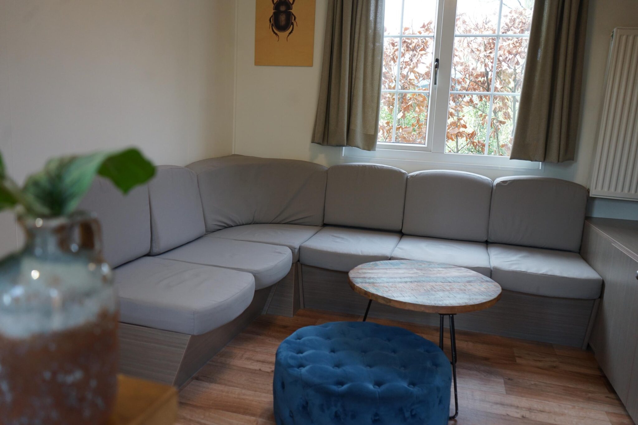 Mobile Home 4 - Das Mobilehome 4 ist ein freistehendes, ebenerdiges Mobilheim und bietet Platz für 4 Personen. Im Wohnzimmer finden Sie eine gemütliche Sitzecke mit einem Fernseher. Die offene Küche verfügt über einen Kühlschrank mit Gefrierfach, einen Wasserkocher, eine Spülmaschine, eine Mikrowelle sowie eine Filterkaffeemaschine und eine Senseo-Kaffeemaschine.