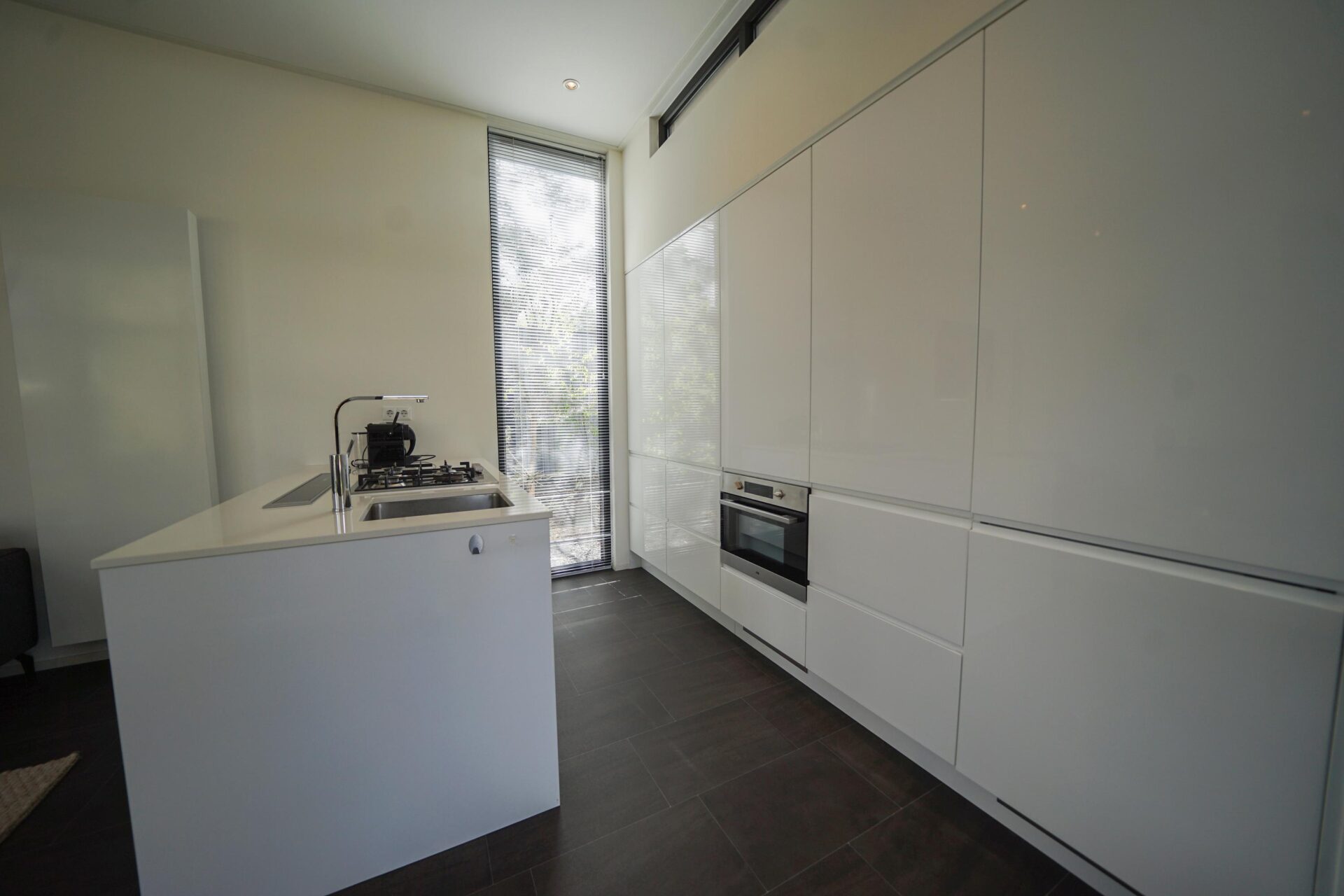 Dieses Gefühl von Ruhe und Weite stellt sich auch dann ein, wenn man das Haus betritt. Sie stehen direkt im großen Wohnzimmer mit einer offenen Küche, die aus einer Küchenzeile und allem notwendigen Küchenzubehör besteht. Letzteres umfasst ein Kochfeld, eine Dunstabzugshaube, einen Kühlschrank mit Gefrierfach, einen Geschirrspüler, eine Mikrowelle, einen Backofen und ein Spülbecken aus Edelstahl.
