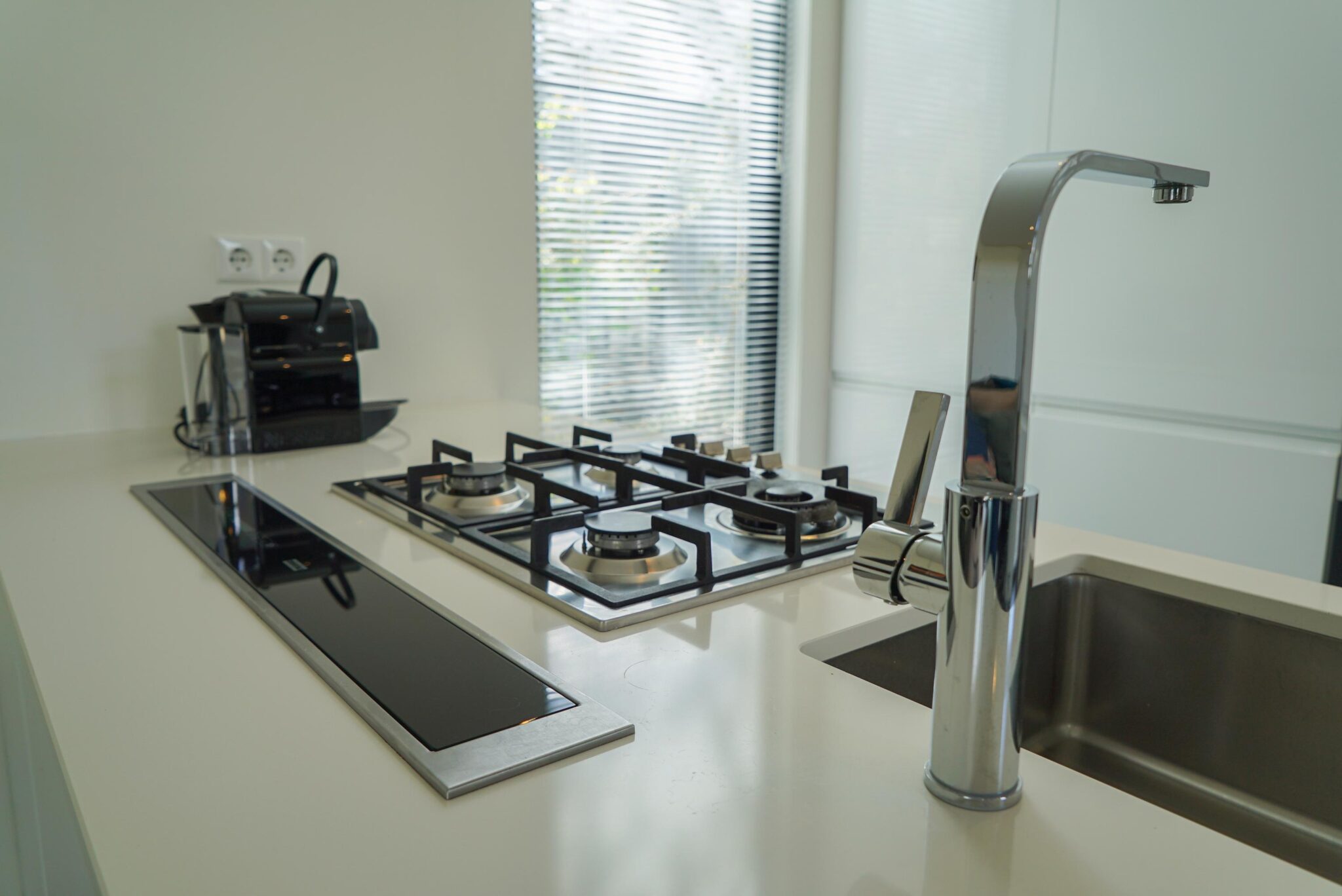 Dieses Gefühl von Ruhe und Weite stellt sich auch dann ein, wenn man das Haus betritt. Sie stehen direkt im großen Wohnzimmer mit einer offenen Küche, die aus einer Küchenzeile und allem notwendigen Küchenzubehör besteht. Letzteres umfasst ein Kochfeld, eine Dunstabzugshaube, einen Kühlschrank mit Gefrierfach, einen Geschirrspüler, eine Mikrowelle, einen Backofen und ein Spülbecken aus Edelstahl.