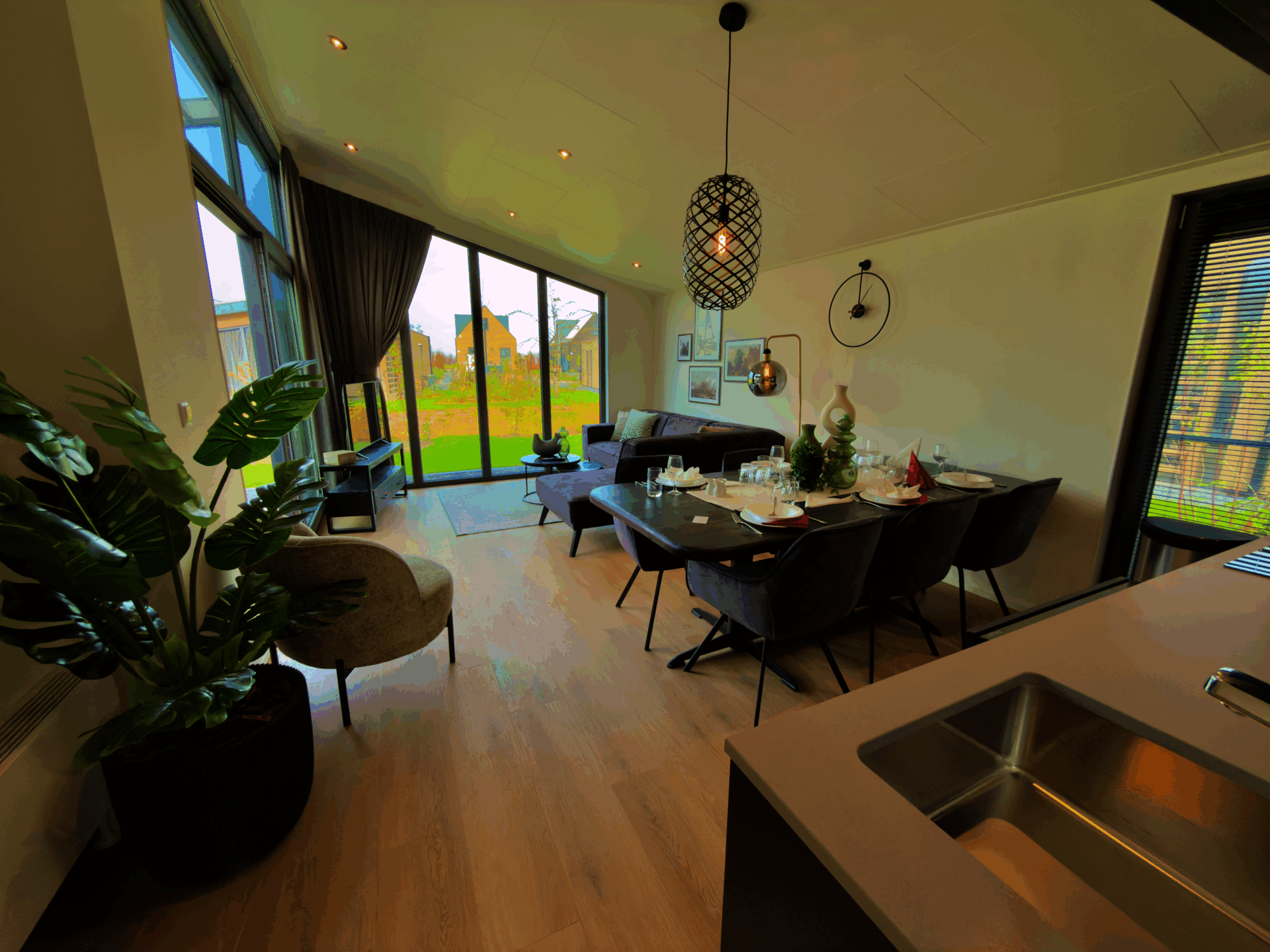Ferienhaus am Wasser mit privater Sauna - Willkommen in diesem wunderschönen, luxuriösen Ferienhaus, gelegen am Wasser im malerischen Enkhuizen. Dieser freistehende Bungalow vereint Komfort, Stil und Luxus mit Nachhaltigkeit dank A+++ Energieklasse, Wärmepumpe und Solarmodulen. Das Haus bietet eine gemütliche Atmosphäre und alle Annehmlichkeiten für einen sorgenfreien und entspannten Aufenthalt.