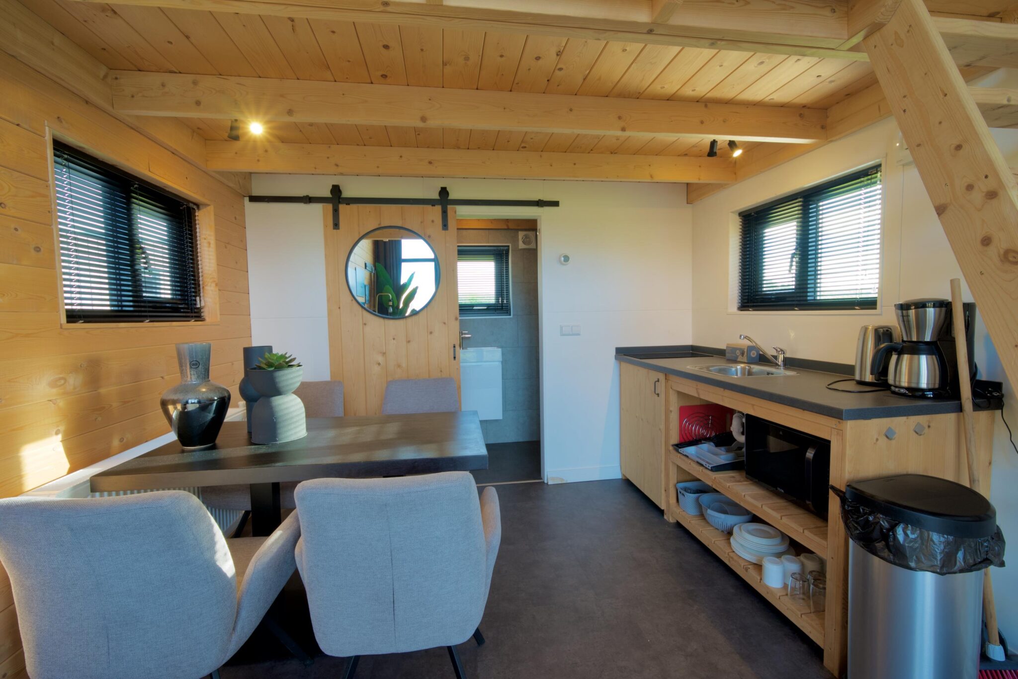 Dieses freistehende Chalet wurde für Komfort auf wenigen Quadratmetern entworfen. Mit einem clever eingerichteten Wohnbereich, einer praktischen Küche und einem stimmungsvollen Schlafloft unter dem Dach bietet dieses Tiny House alles für einen angenehmen und intimen Aufenthalt. Die Inneneinrichtung ist modern und komplett bezugsfertig.