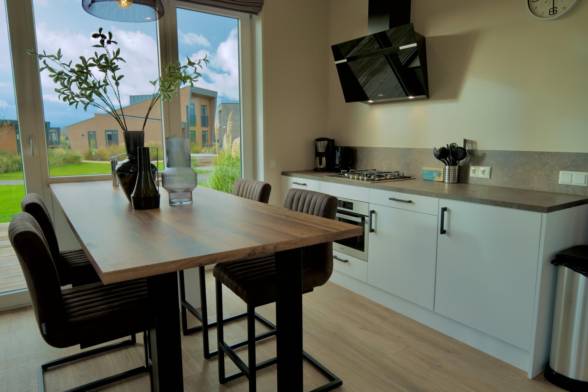 - Große Fensterfronten und Terrassentüren in der Küche
