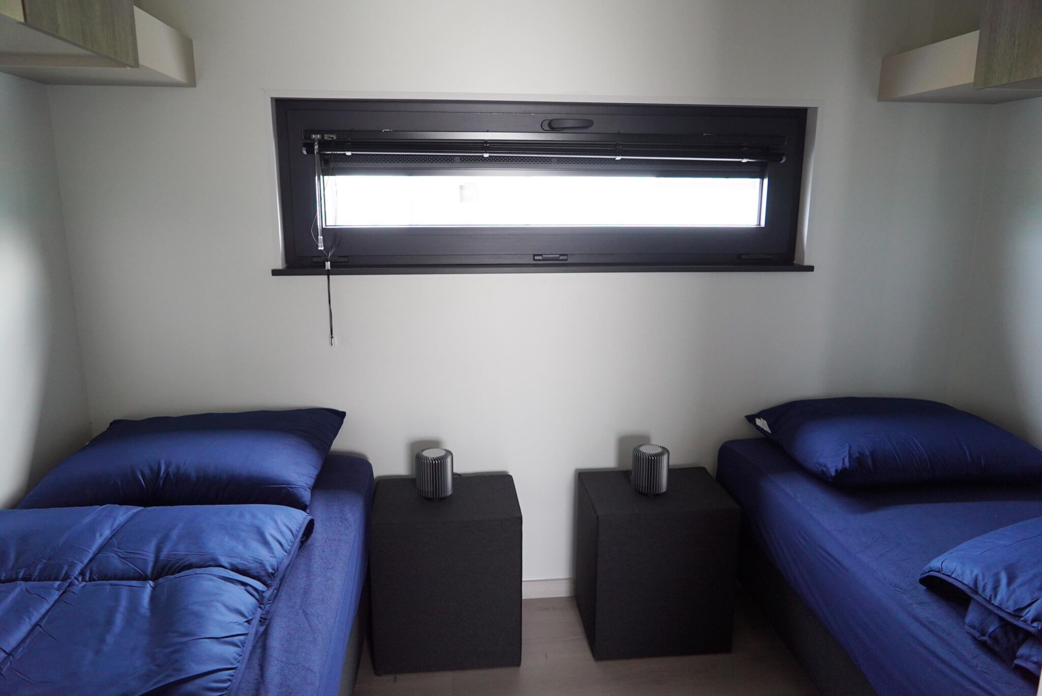 Der Typ Lake House verfügt über drei Schlafzimmer mit insgesamt sechs Betten. Jedes der drei Schlafzimmer ist mit einem geräumigen Kleiderschrank ausgestattet. Das luxuriös ausgestattete Badezimmer verfügt über ein Waschbecken, eine geräumige Duschkabine und eine Toilette.