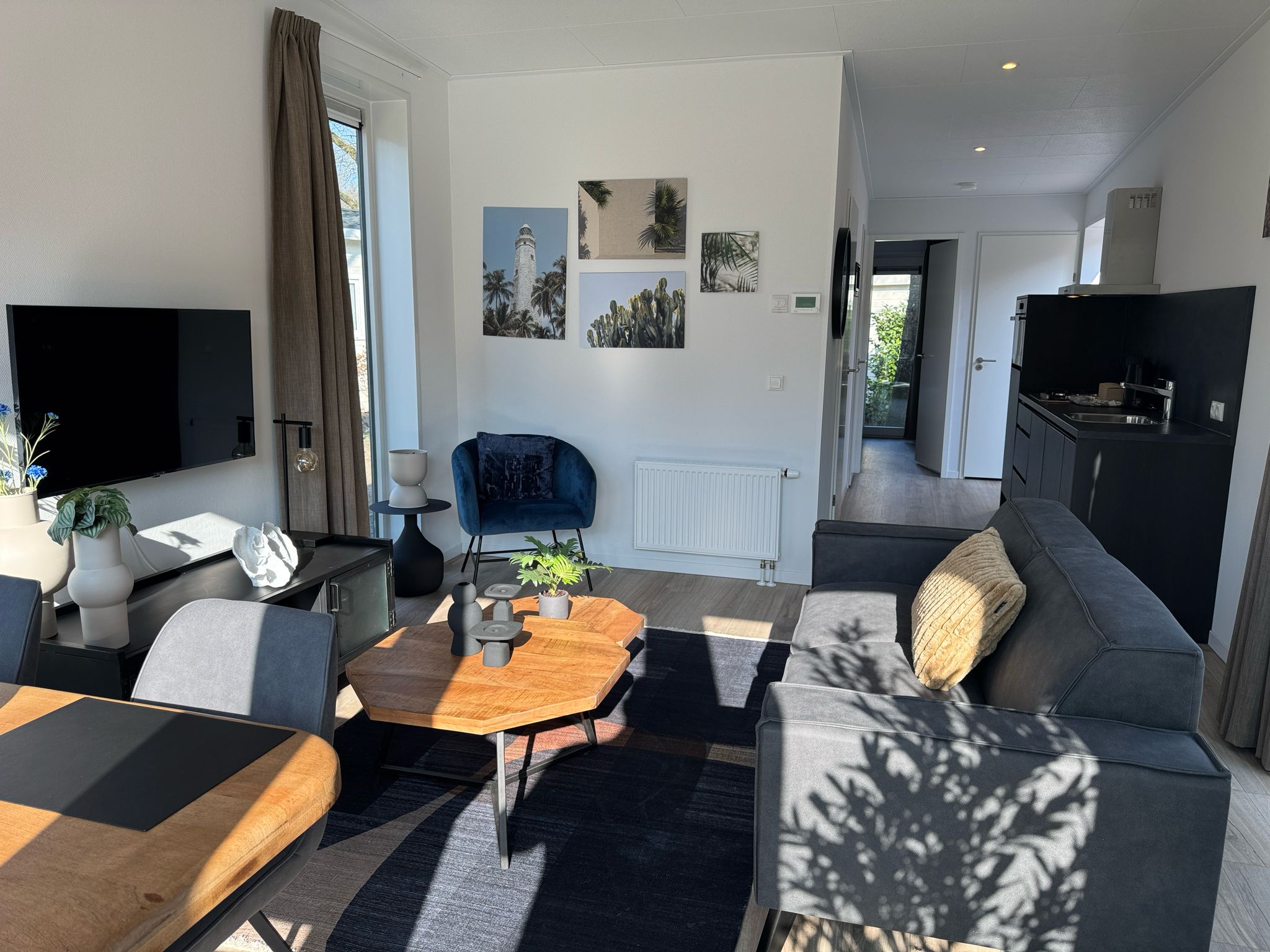 Wenn Sie das Haus betreten, fällt Ihnen sofort die Geräumigkeit des Wohnbereichs auf. Von der gemütlichen Sitzecke aus haben Sie einen schönen Blick auf den Garten. Auf beiden Seiten der offenen Küche wurden Arbeitsflächen geschaffen und der Esstisch in der Mitte ist das Herzstück des Raumes. Auf der anderen Seite des Wohnzimmers befinden sich die 2 Schlafzimmer, die beide für jeweils 2 Personen geeignet sind. Das Badezimmer ist mit modernen Sanitäreinrichtungen ausgestattet und das Haus verfügt über eine separate Toilette.
