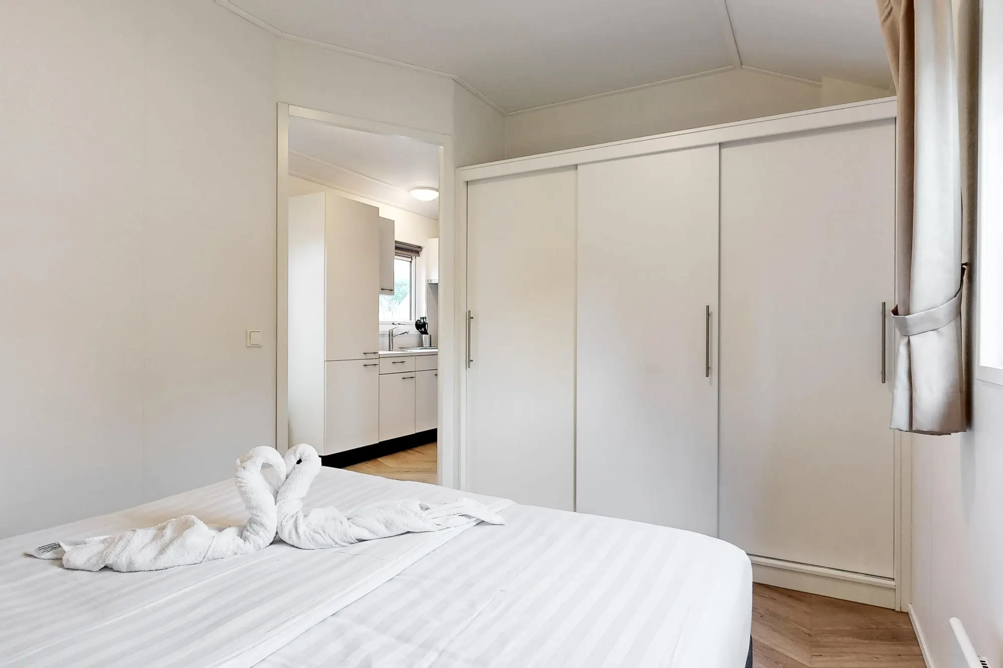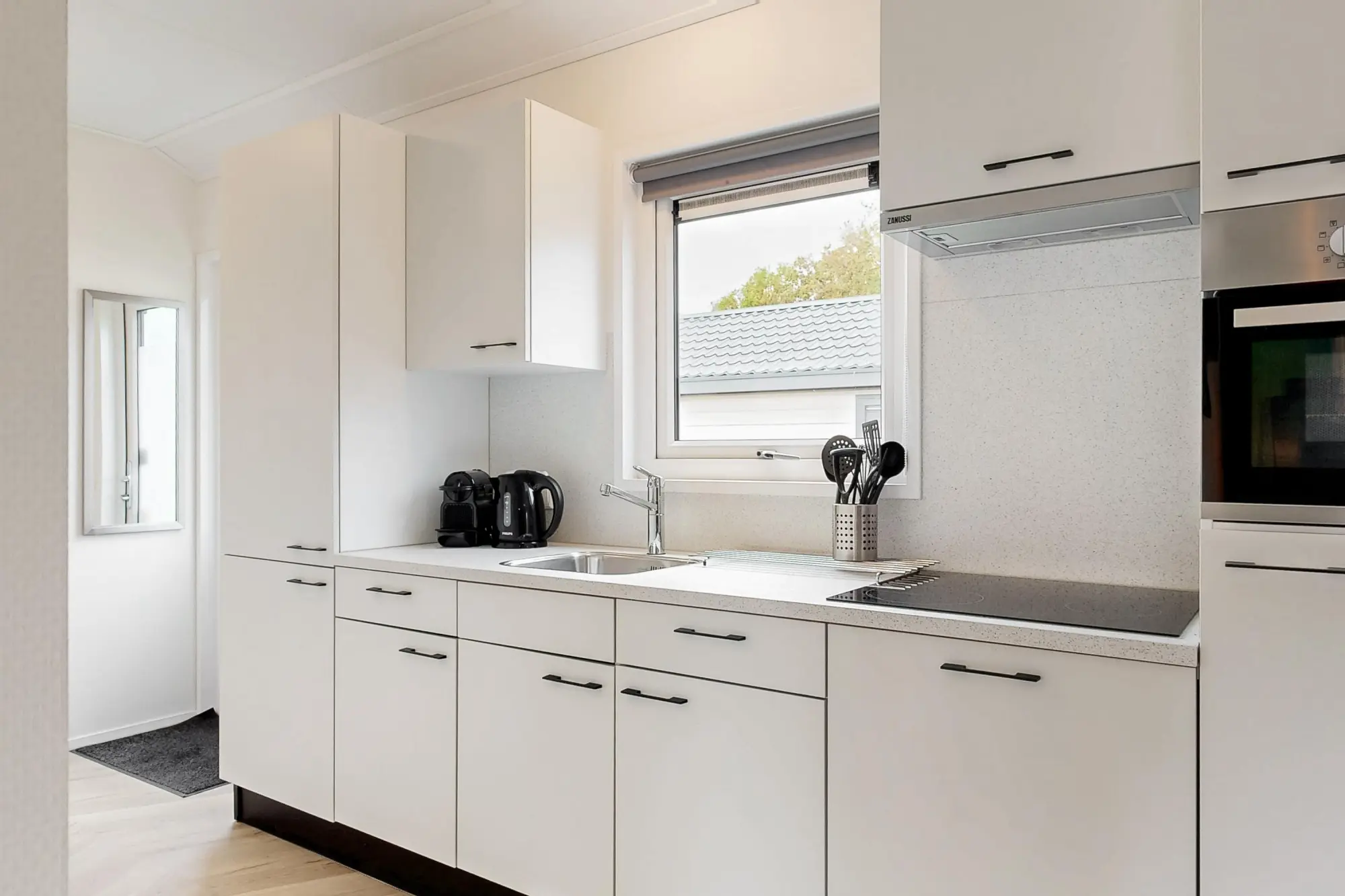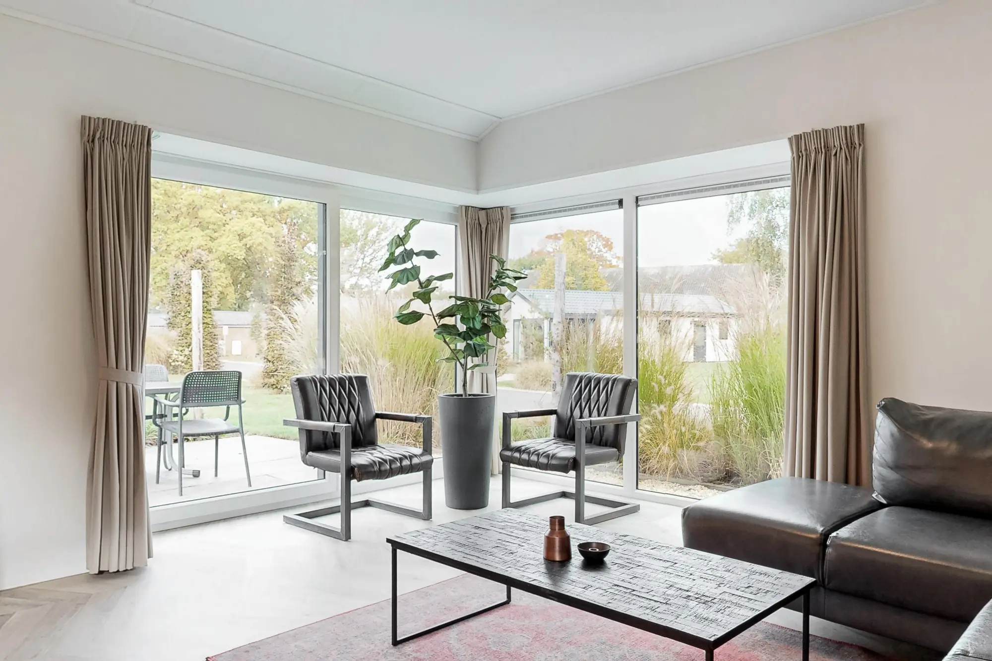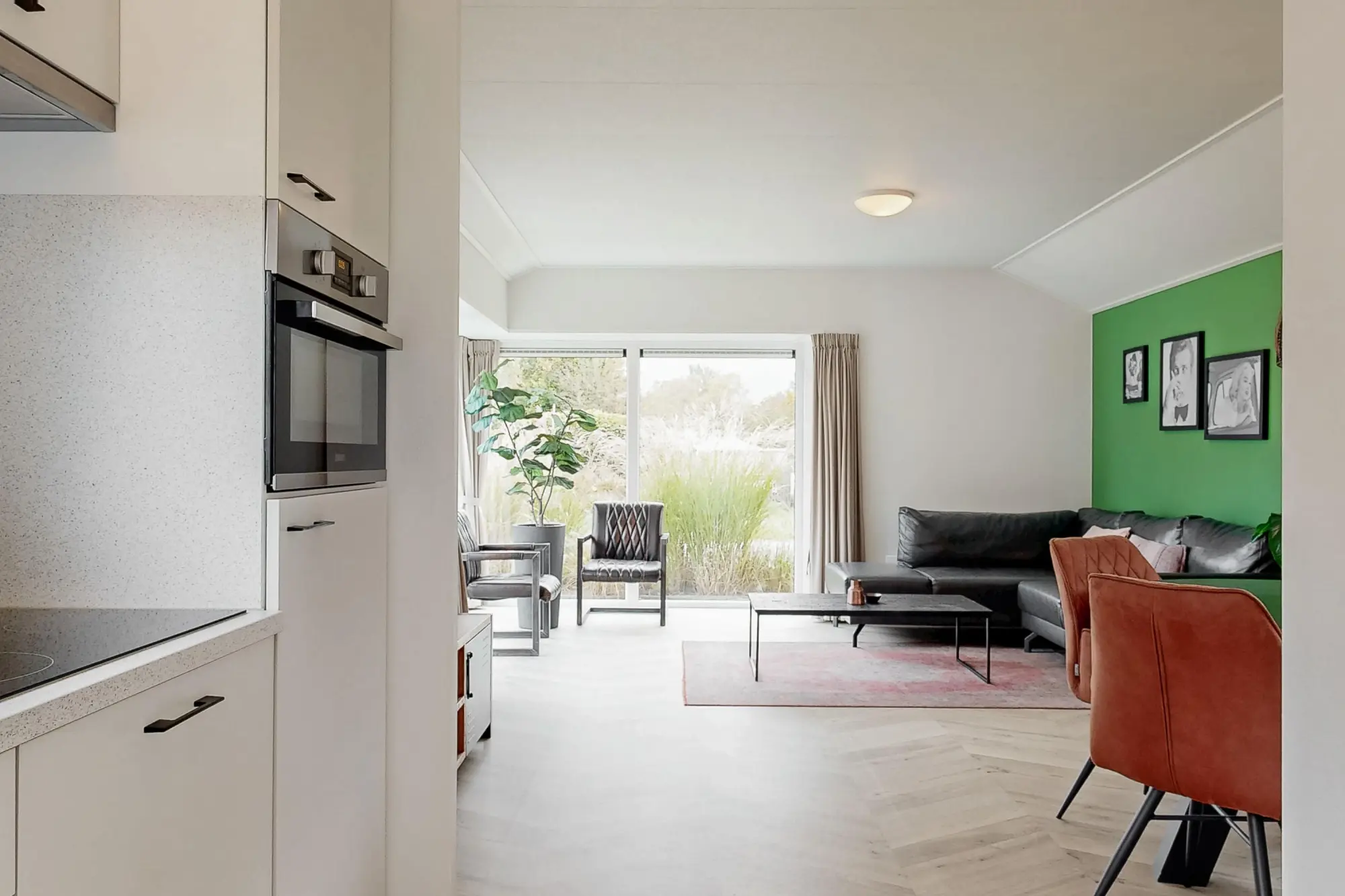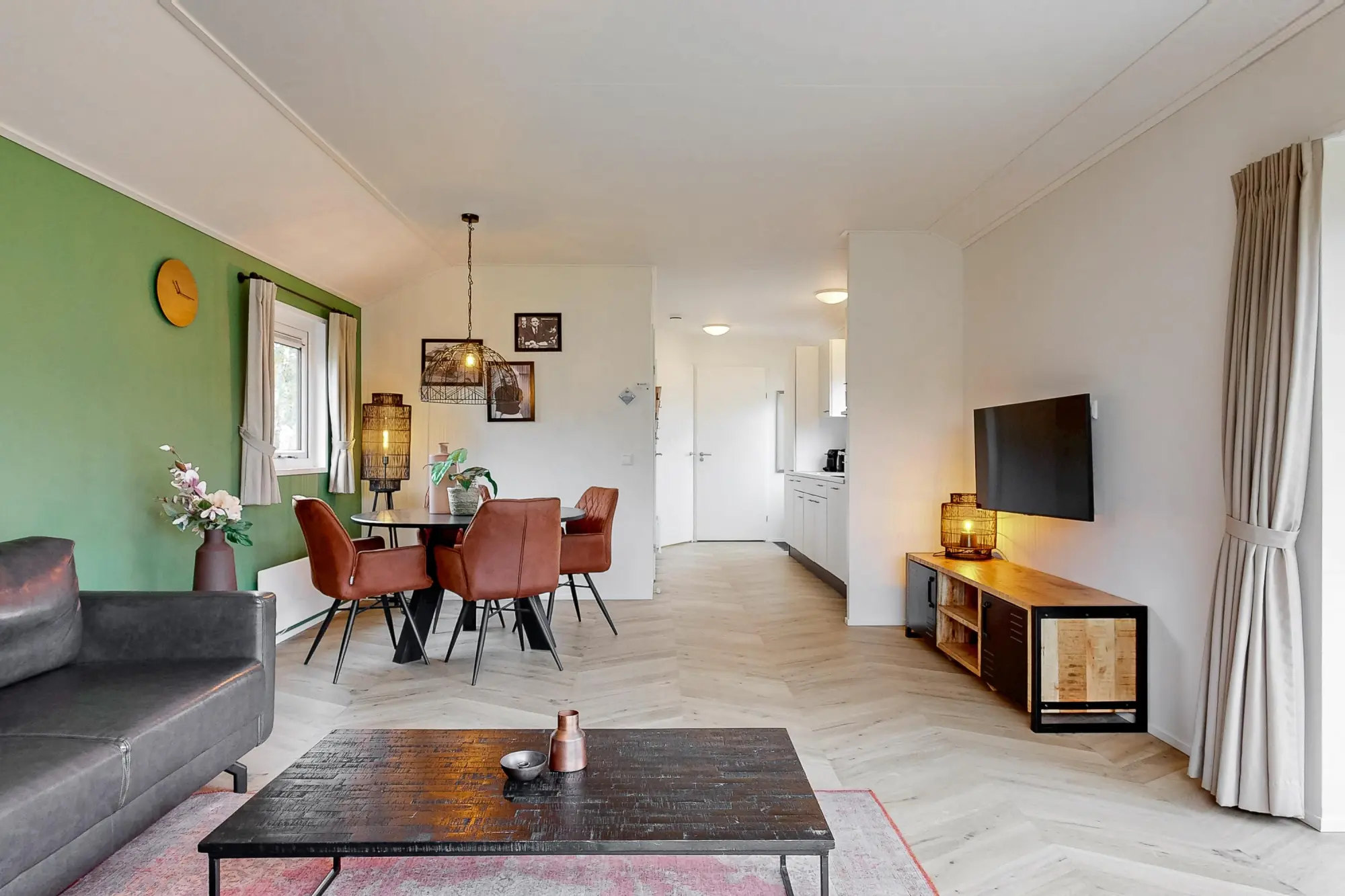 Velthorst - Das Ferienhaus Velthorst 4 ist ein freistehendes, ebenerdiges Chalet, das für 4 Personen geeignet ist. Das Wohnzimmer hat eine gemütliche Sitzecke und einen Fernseher. Außerdem gibt es eine separate Essecke. Die offene Küche ist u.a. mit einem Geschirrspüler, einer Kombimikrowelle und einer Kaffeemaschine ausgestattet.