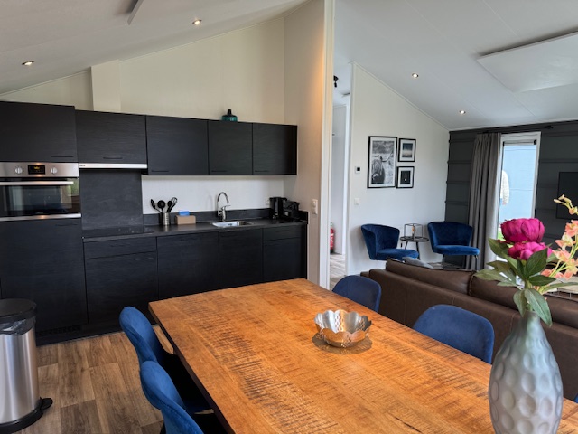 Concept - Komfort von innen und außen, dafür steht das Ferienhaus Boekhorst 4. Für den Bau dieses einzigartigen Chalets wurden pflegeleichte Materialien verwendet. Zudem ist es vollständig isoliert und doppelt verglast. Durch die großen Fenster hat man jeden Tag einen schönen Blick ins Grüne, was das Gefühl von Ruhe und Weite, für das ein Urlaub oft steht, noch verstärkt. Dank der Terrasse an der Vorderseite des Hauses können Sie die schöne Aussicht in die Natur auch direkt im Freien genießen.
