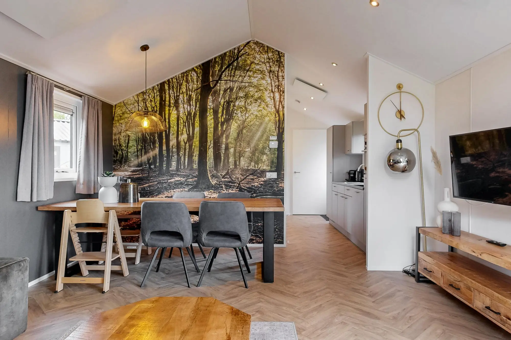 Binnen biedt de woning een functionele en lichte indeling met ruime woonkamer en open keuken, waardoor binnen en buiten mooi met elkaar verbonden zijn. De grote ramen zorgen voor veel natuurlijke lichtinval en een aangename sfeer. De indeling en afwerking zijn comfortabel en onderhoudsvriendelijk — perfect voor zowel eigen gebruik als recreatief gebruik. Met 2 slaapkamers en een aparte badkamer voorziet de woning van alle gemakken voor een prettig verblijf. Speciaal is de kids-kamer! Geheel aangepast voor kinderen.
