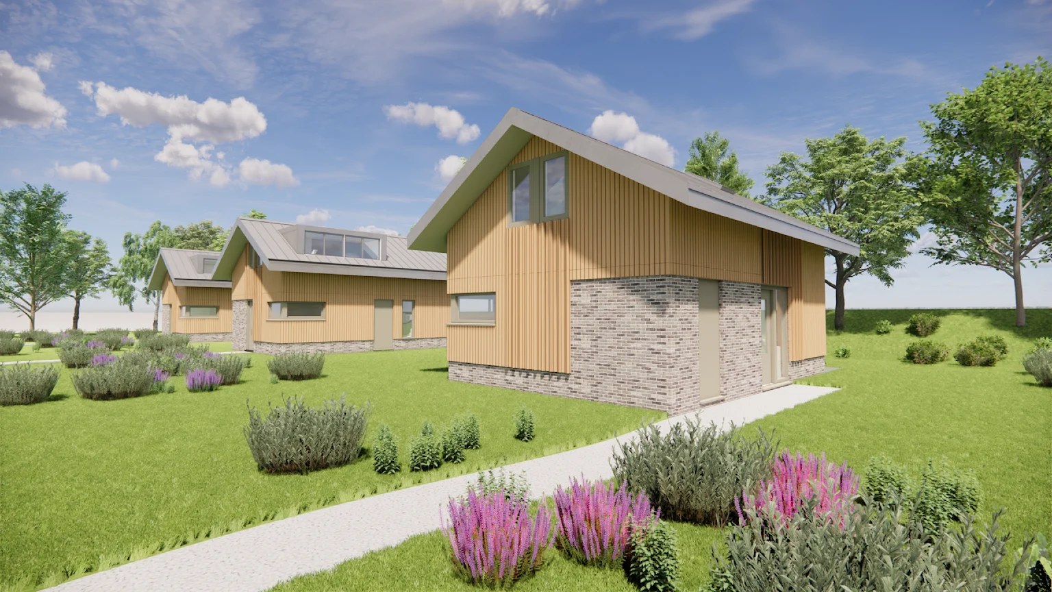 Dijkvilla 6 - Am Rande des wunderschönen EuroParcs Kagerplassen entstehen 13 exklusive Deichhäuser, bei deren Gestaltung Komfort, Nachhaltigkeit und Aussicht im Vordergrund standen. Auf großzügigen Grundstücken in einer wunderschönen natürlichen Umgebung gelegen, kombinieren die Häuser luxuriöses Freizeitleben mit Privatsphäre und Raum. Es werden zwei Typen von Villen angeboten.