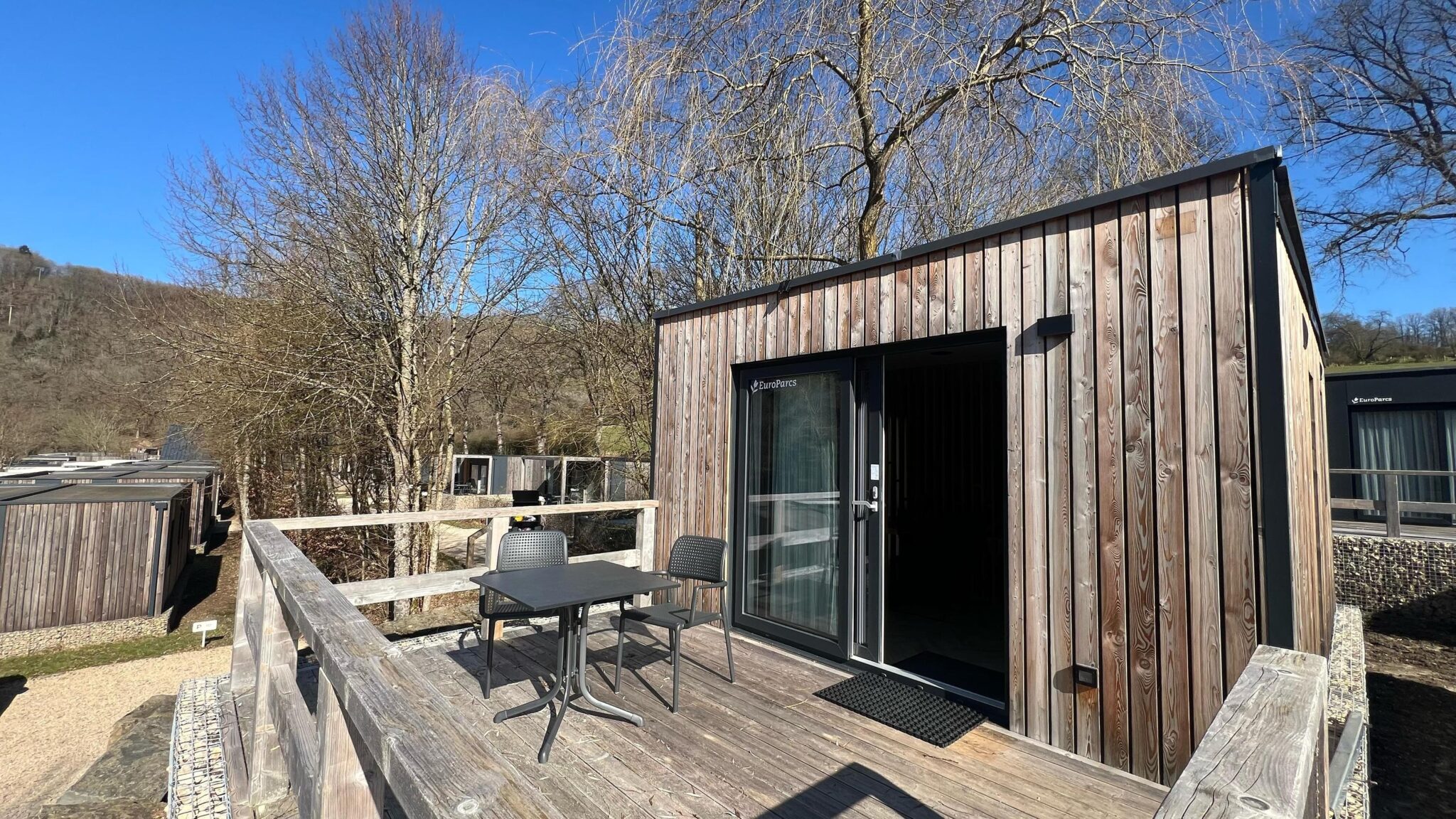Tiny House 2 - Dieses Tiny House ist für 2 Personen geeignet. Die schöne Lage mit Blick auf den Garten erfreut jeden Tag aufs Neue, aber auch das Haus selbst ist unverwechselbar. Sowohl innen als auch außen wurden pflegeleichte Materialien verwendet und das Haus ist vollständig isoliert und doppelt verglast. Durch die großen Fenster haben Sie jeden Tag einen schönen Blick ins Grüne. Das gilt auch für die Terrasse an der Vorderseite des Ferienhauses.