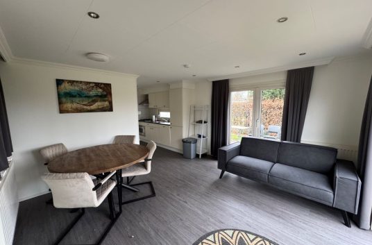 Velthorst 4 - Schönes 4 Bett Chalet Velthorst auf einem Mietgrundstück auf dem Lande bei EuroParcs Limburg in Susteren. Dieses gepflegte Chalet ist gemütlich eingerichtet. Der zentrale Wohnbereich hat große Fenster. Dies sorgt für viel natürliches Licht und eine schöne Aussicht nach draußen. Der Wohnbereich ist gemütlich eingerichtet mit einem geräumigen Sofa, einem Couchtisch und einem TV-Schrank. TV-Kanäle werden über einen CAI-Anschluss empfangen und Internet ist ebenfalls verfügbar.