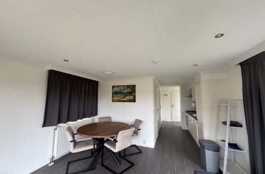 Der Essbereich ist mit einem schönen Esstisch und vier Stühlen ausgestattet.Schließlich befindet sich hier auch die Küche. Die Küche ist sauber verarbeitet und mit einem Kühl-Gefrierschrank, einer Kombimikrowelle mit Backofenfunktion, einem Geschirrspüler und einem Gasherd mit Dunstabzugshaube ausgestattet.