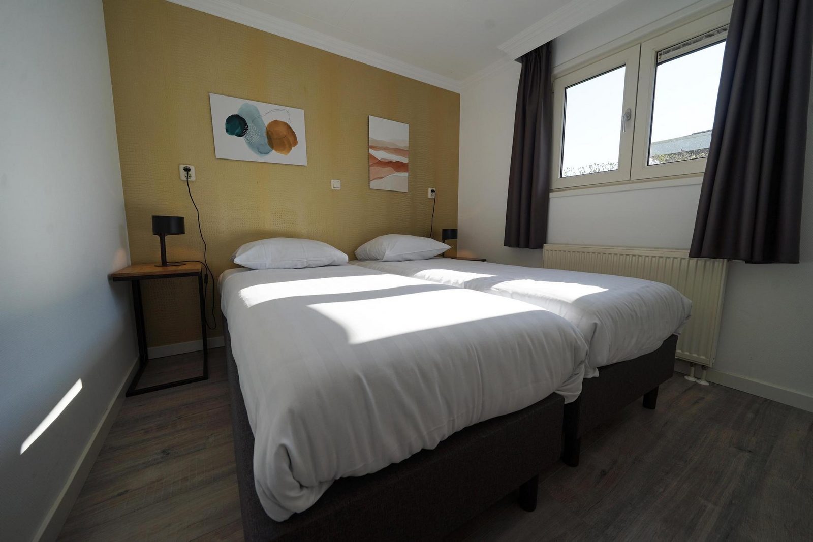Das Chalet hat außerdem 2 Schlafzimmer, jeweils mit 2 Einzelbetten. Darüber hinaus gibt es ein Badezimmer mit Regendusche, Waschbecken und WC.