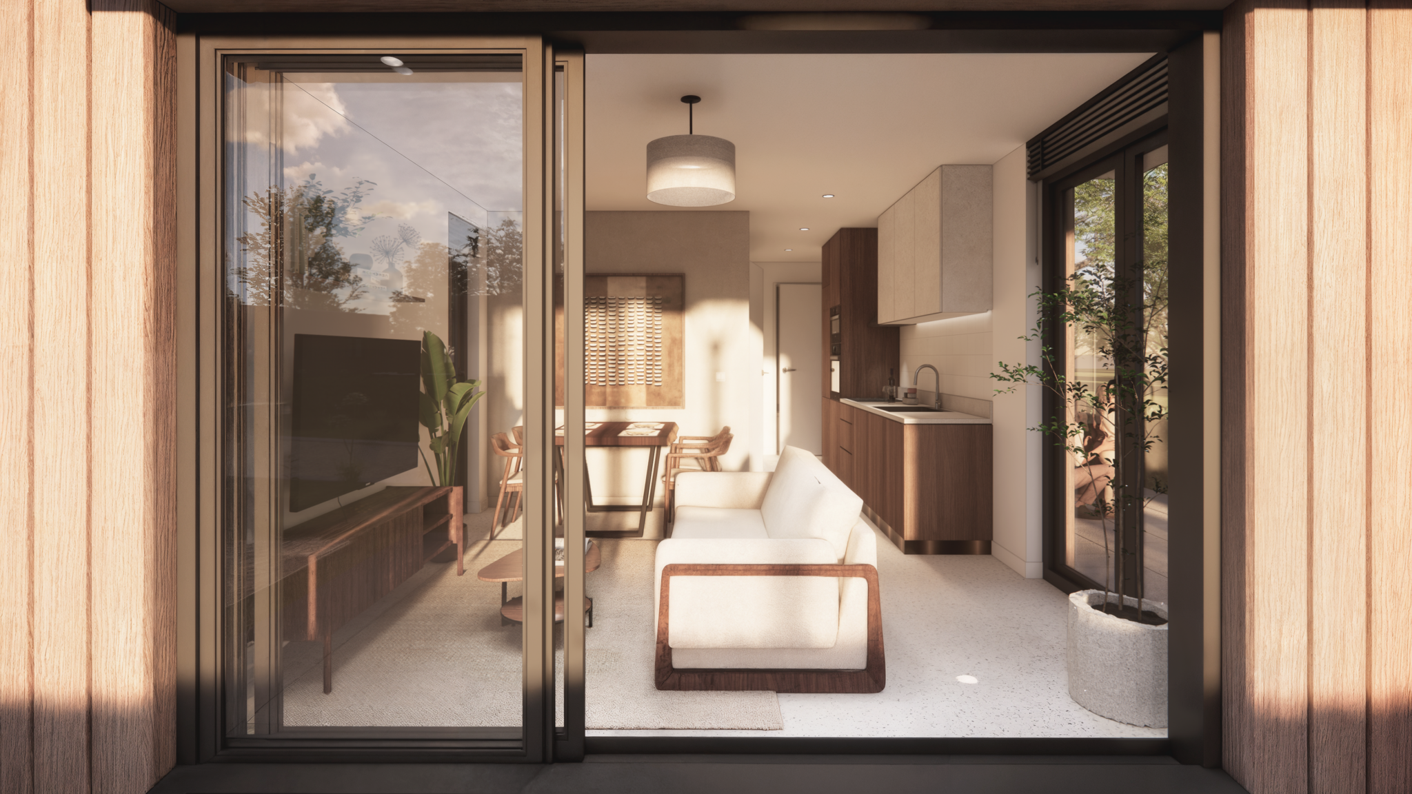 Nature Dream 4 – Entfliehen Sie dem Alltagstrubel und lassen Sie sich vom gemütlichen und modernen Nature Dream 4 verzaubern. Hier vereinen sich Komfort, Stil und Nachhaltigkeit. Dieses brandneue Chalet fällt sofort durch sein natürliches Design und die durchdachte Raumaufteilung auf. Durch die großen Fenster ist der Wohnzimmer mit Tageslicht gefüllt.