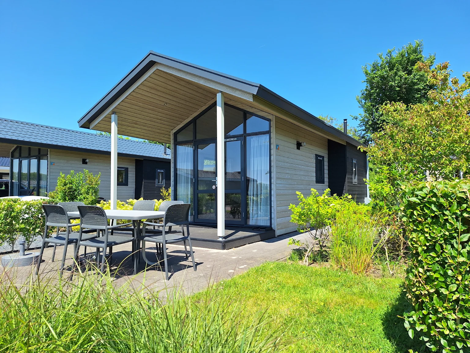 Lodge 4 - Der Type 'Lodge' eignet sich für vier Personen. Dieses gemütliche Ferienhaus hat eine Glasfassade, die Ihnen einen tollen Rundum-Blick bietet. Im Erdgeschoss befinden sich eine offene Küchenecke, ein Badezimmer und ein Schlafzimmer. Vom Wohnzimmer aus gelangen Sie in das zweite Schlafzimmer auf dem Dachboden.