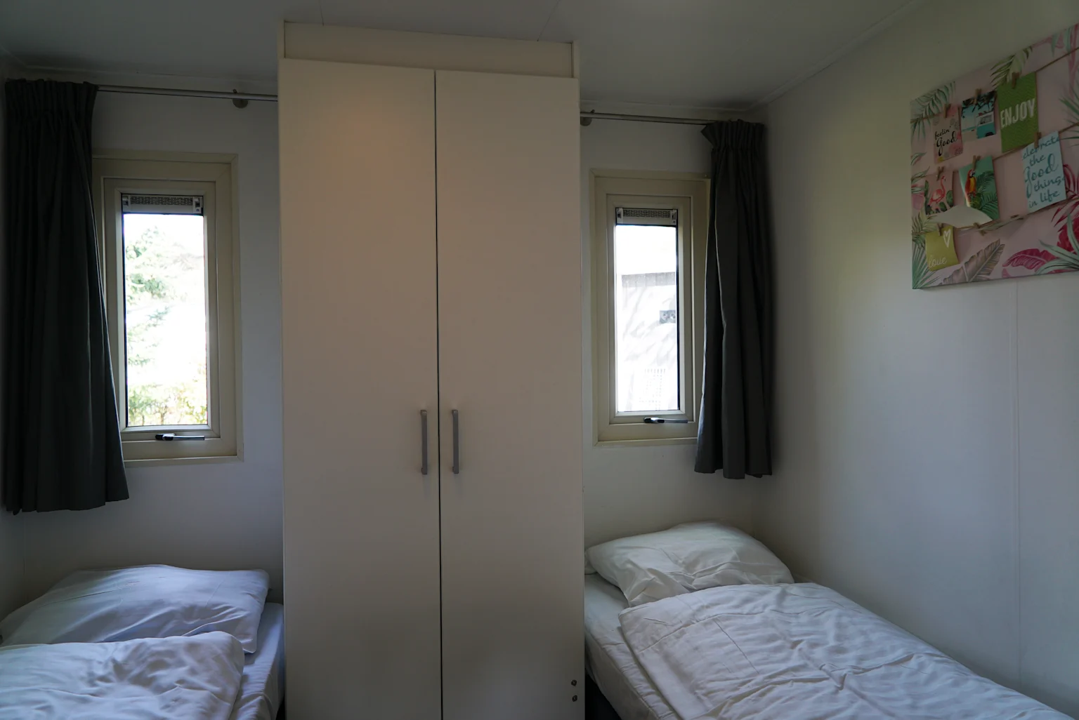 Die Schlafzimmer sind mit jeweils zwei Einzelbetten eingerichtet. Im Hauptschlafzimmer wurden die Betten zu einem Doppelbett zusammengeschoben. Außerdem gibt es viel Stauraum in den Schränken und zu dem Ferienhaus gehört ein Parkplatz.