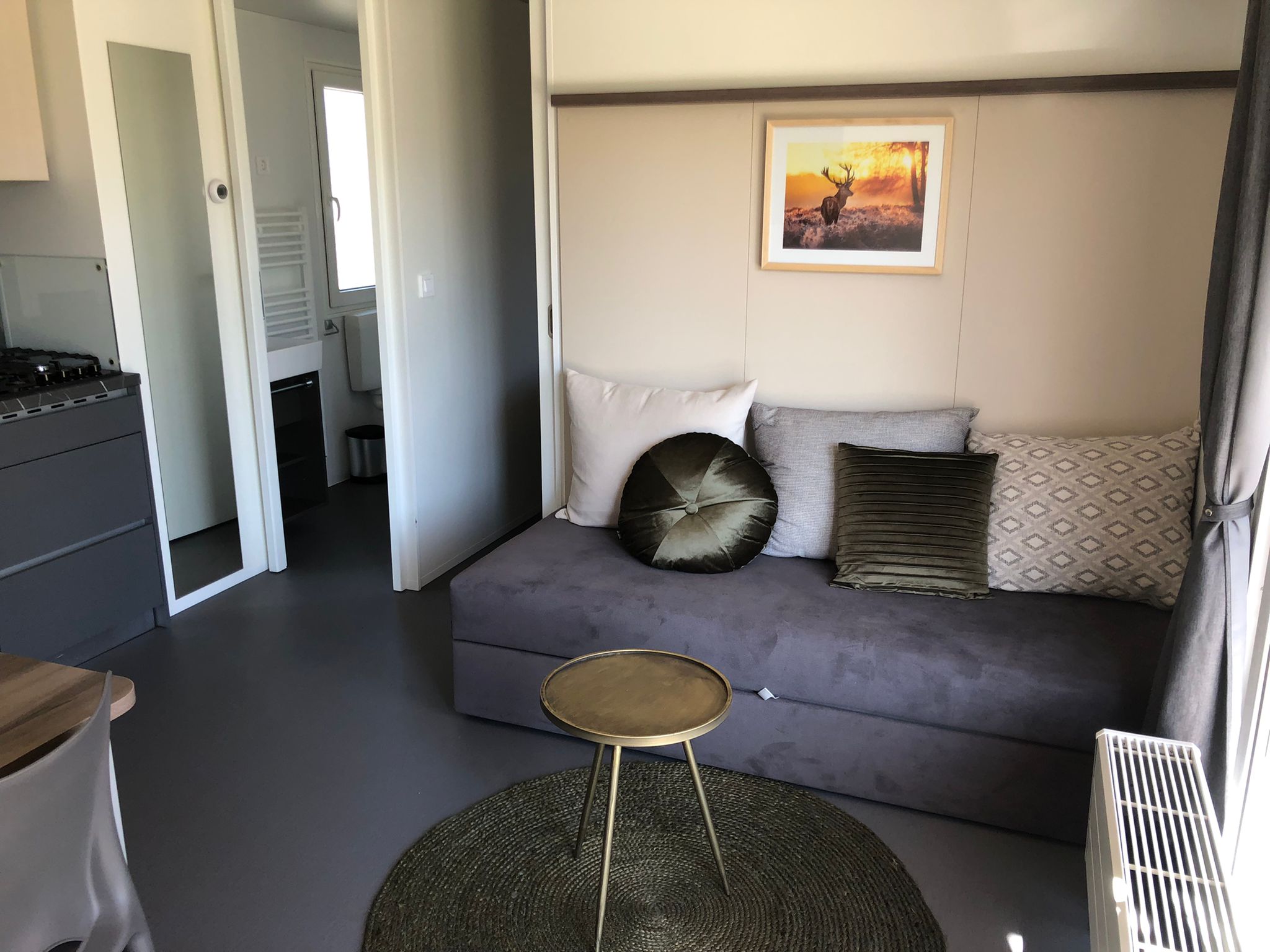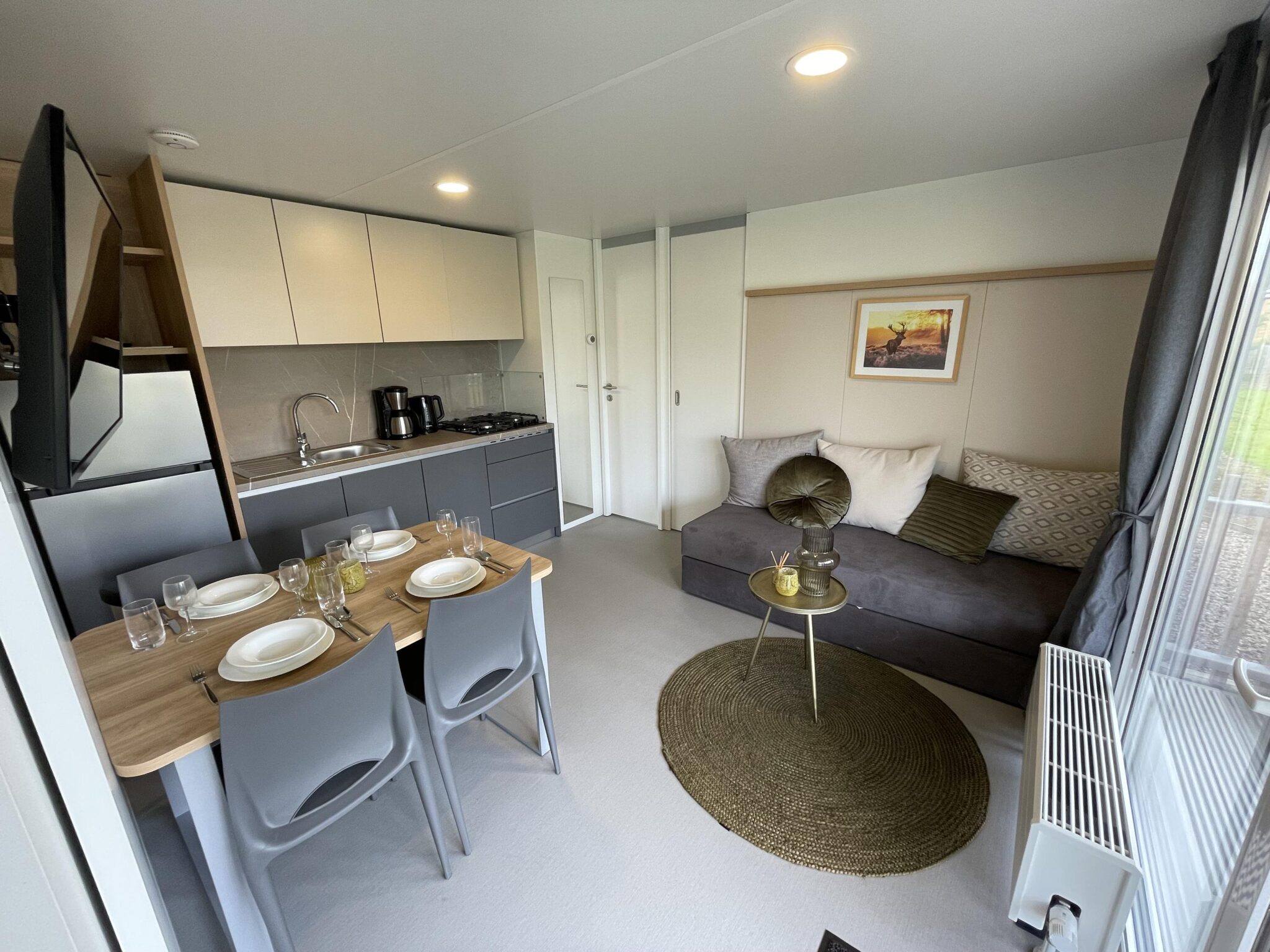 Cosy Unique - Das Cosy Unique 4* ist ein modernes und komfortables Chalet mit einer gemütlichen, hölzernen Atmosphäre. Das freistehende Chalet ist ebenerdig und für 4 Personen geeignet. Im Gemeinschaftsraum finden Sie eine Couch mit Fernseher, eine Essecke und eine offene Küche mit Filterkaffeemaschine, Kühl- und Gefrierschrank und Wasserkocher.
