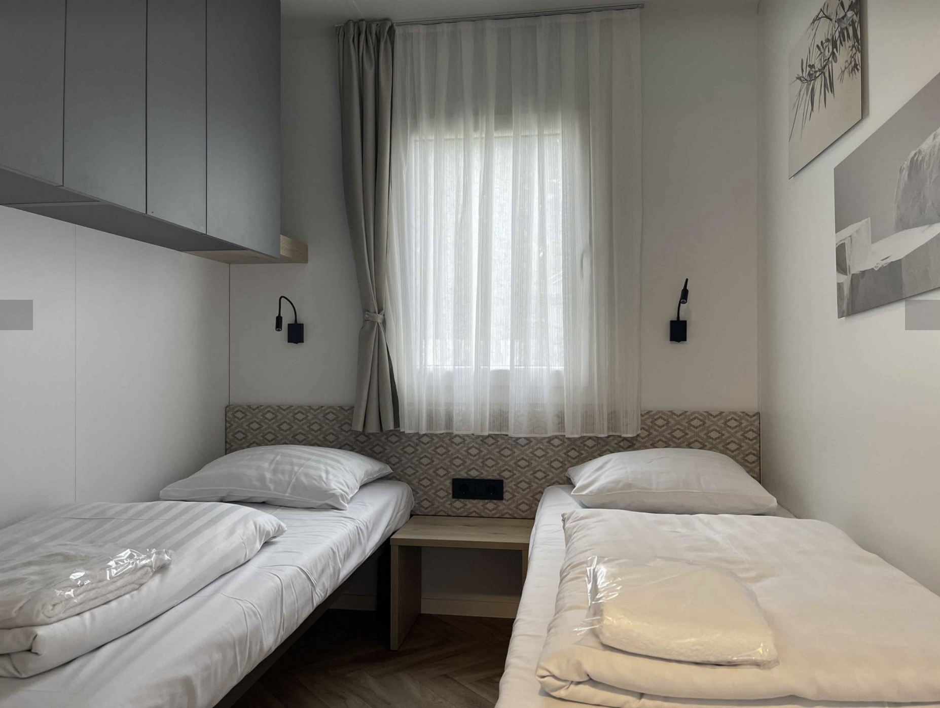 Het chalet telt drie slaapkamers: twee slaapkamers met elk twee eenpersoonsbedden, eén slaapkamer met een tweepersoonsbed. Daarnaast is er een badkamer met douche en wastafel én een separaat toilet. Alles bevindt zich op één niveau, wat zorgt voor extra comfort en toegankelijkheid. Buiten geniet je op je eigen terras met tuinset van de groene omgeving — perfect voor een kop koffie in de ochtendzon of lange zomeravonden. Verder is er gratis Wi-Fi en parkeergelegenheid voor 1 auto direct bij het chalet.