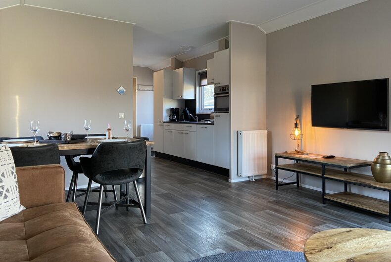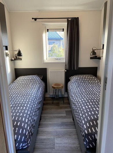 Velthorst Gris 6 - De Velthorst 6 ist ein freistehendes, ebenerdiges Ferienhaus und für 6 Personen geeignet. Im hellen und geräumigen Wohnzimmer befinden sich eine Sitzecke mit Fernseher, ein Essbereich und eine Küche mit unter anderem einer Kaffeemaschine, einer Kombi-Mikrowelle und einem Geschirrspüler. Insgesamt gibt es 3 Schlafzimmer, davon 2 mit jeweils zwei Einzelbetten und 1 mit einem Etagenbett. Das Badezimmer ist mit einer Toilette, einem Waschbecken und einer Duschkabine ausgestattet. Der Garten verfügt über eine Terrasse mit Gartenmöbeln. Ein Parkplatz steht an der Unterkunft zur Verfügung.