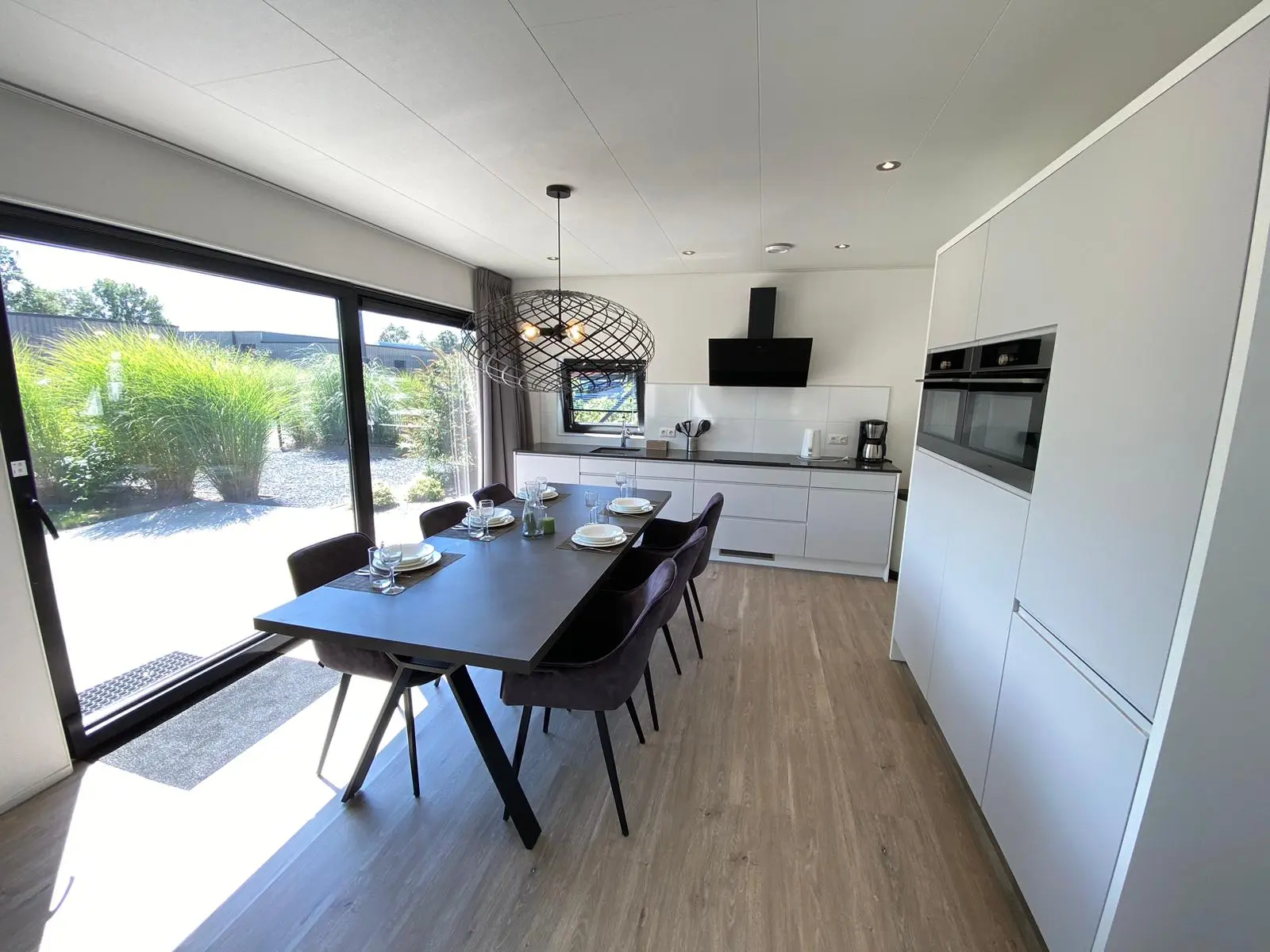 Ein wahrer Hingucker von außen ist die Dachterrasse im ersten Stock, von der aus Sie einen Panoramablick über das Wasser haben. Aber dieses Ferienhaus bietet noch viele weitere Highlights, insbedondere in Bezug auf die Einrichtung. Da wäre beispielsweise das geräumige Wohnzimmer mit Gaskamin oder die schöne, luxuriöse Küche, die natürlich über alle Annehmlichkeiten verfügt, die Sie in einem bestens ausgestatteten Ferienhaus erwarten dürfen: eine Kühl-Gefrier-Kombination, ein Kombi-Backofen, ein Geschirrspüler und ein Induktionskochfeld mit Dunstabzug.