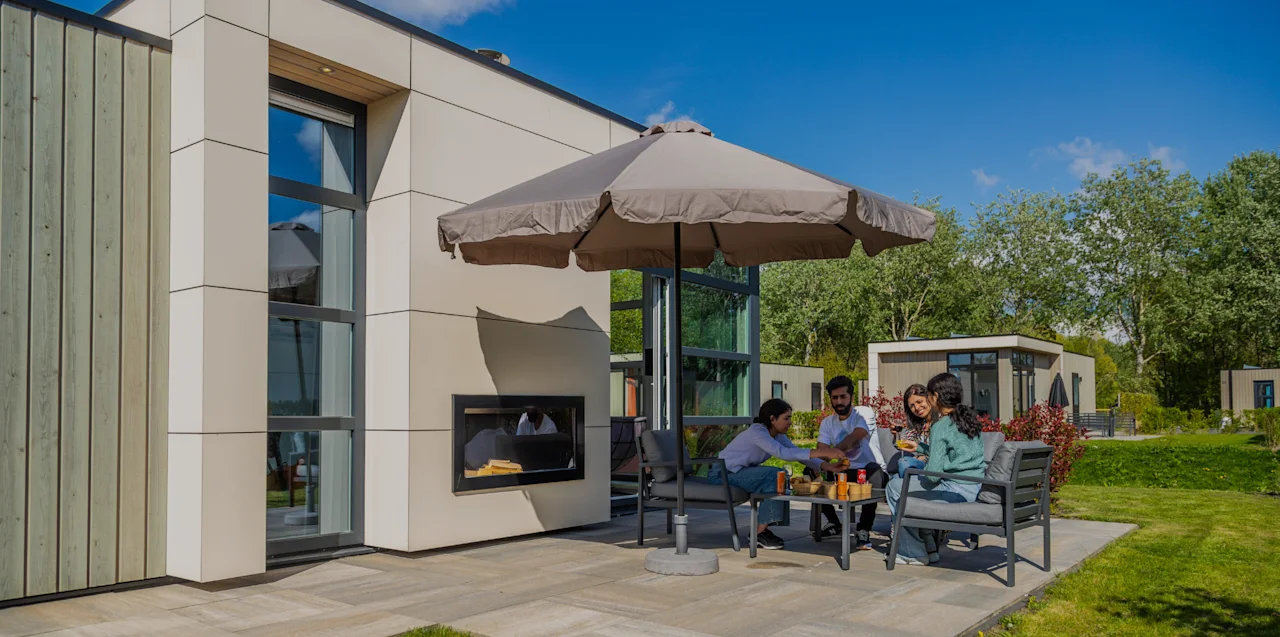 Dieser moderne Ferienbungalow bietet einen hellen und einladenden Wohnbereich, zwei komfortable Schlafzimmer und eine praktische Raumaufteilung. Dank der großen Fenster ist das Wohnzimmer ein echter Blickfang: lichtdurchflutet, geräumig und mit direktem Zugang zur Terrasse. Die Unterkunft ist vollständig ausgestattet und sofort bezugsbereit.