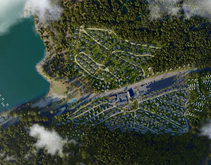 Alle Ferienhäuser erfüllen die Anforderungen der Bauverordnung, wenn die Baugenehmigung erteilt wird. Sie verfügen über eine Multi-Split-Wärmepumpe, die Verkleidung besteht aus Holzelementen und eine große zentrale Photovoltaikanlage versorgt die Häuser mit grünem Strom.